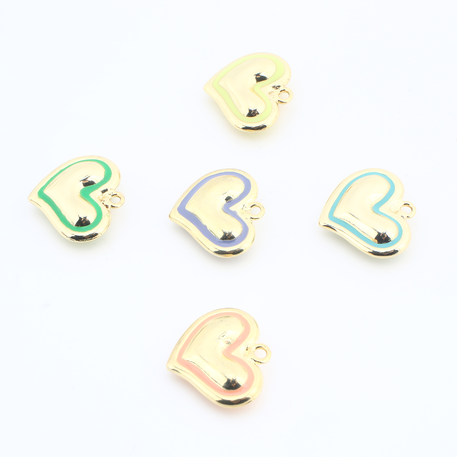 Pendentifs coeur en laiton, Placage de couleur d'or, DIY & émail, plus de couleurs à choisir, 14x13x2mm, Vendu par PC