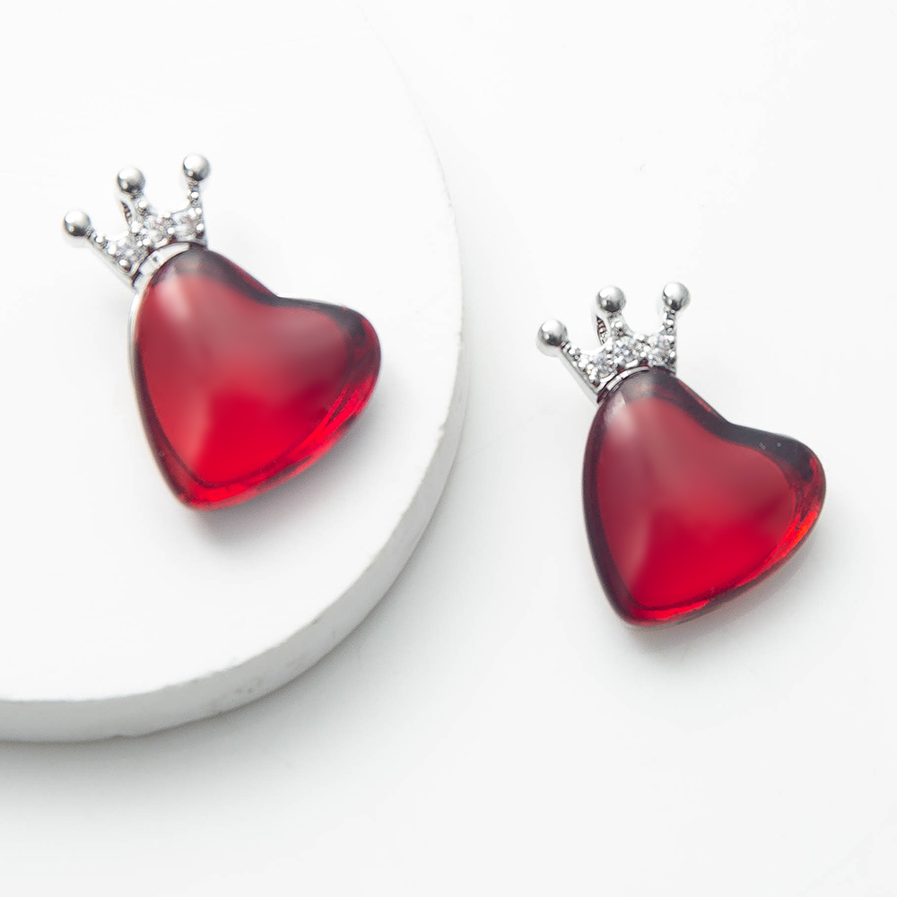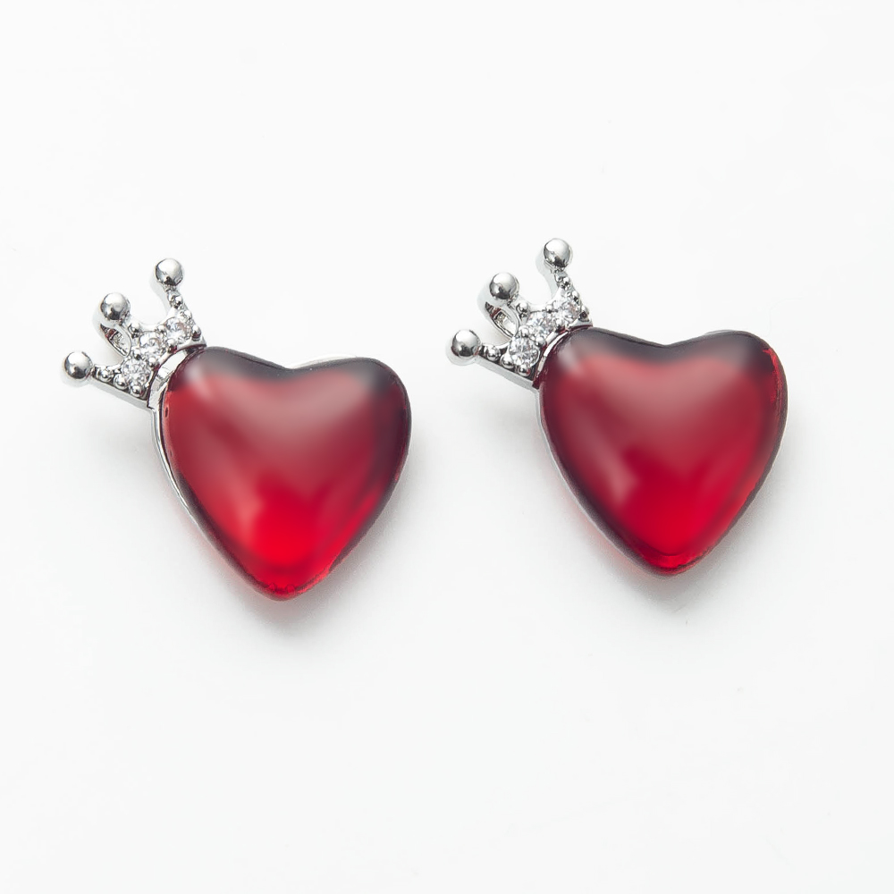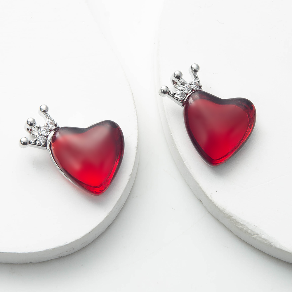 Pendentifs cristal, laiton, avec cristal, coeur, Placage de couleur argentée, DIY, rouge, protéger l'environnement, sans nickel, plomb et cadmium, 22.25x9x21.53mm, 20PC/sac, Vendu par sac