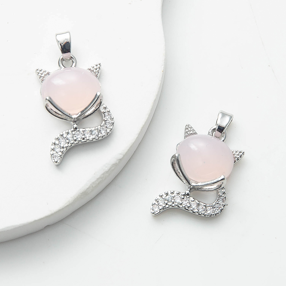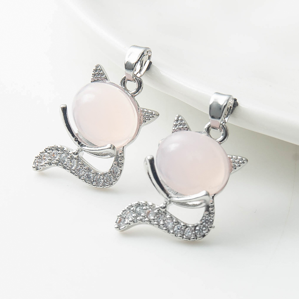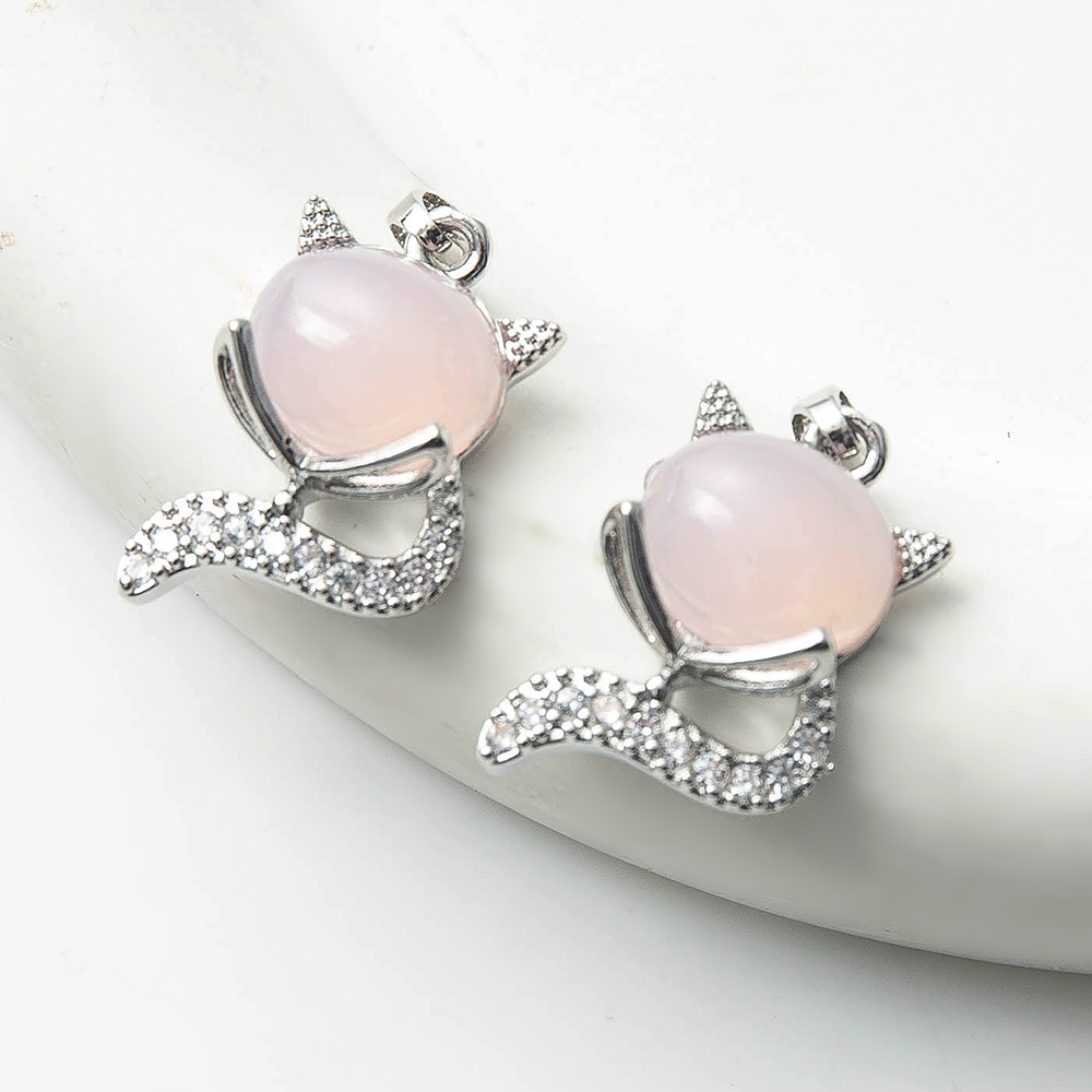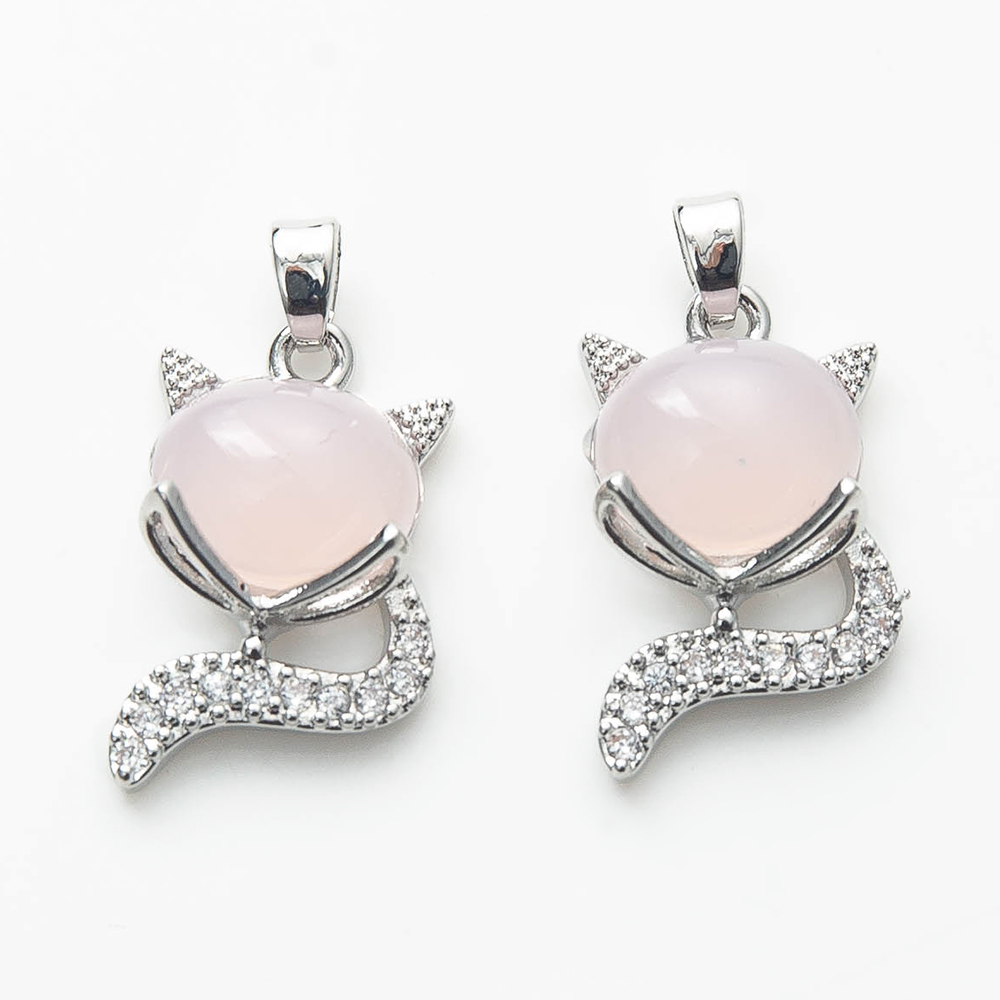 Pendentifs cristal, laiton, renard, Placage de couleur argentée, DIY & pavé de micro zircon, rose, protéger l'environnement, sans nickel, plomb et cadmium, 13.83x6.23x26.20mm, 20PC/sac, Vendu par sac