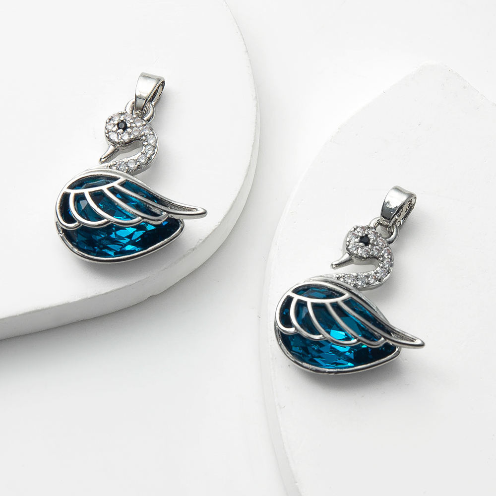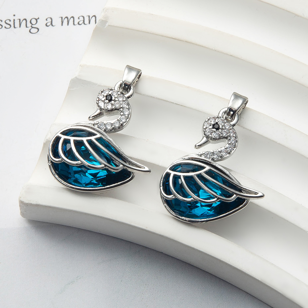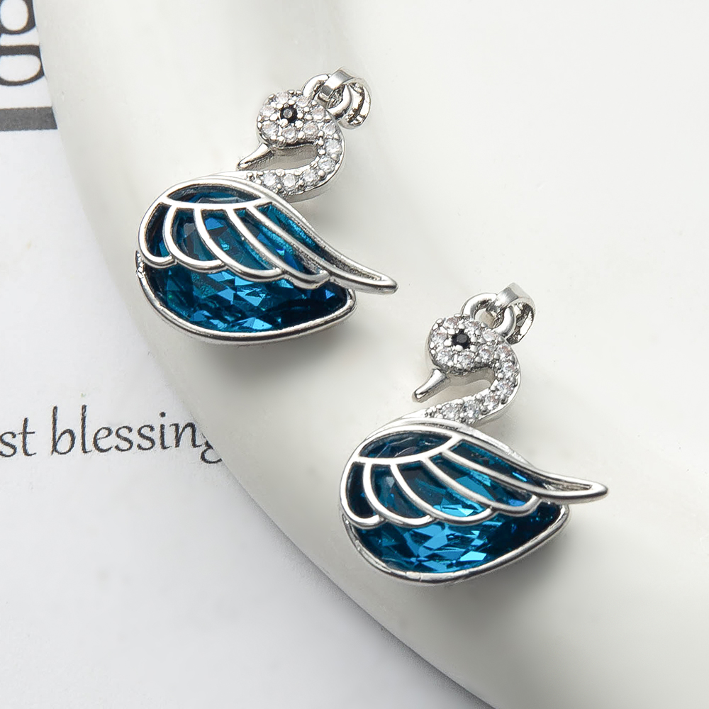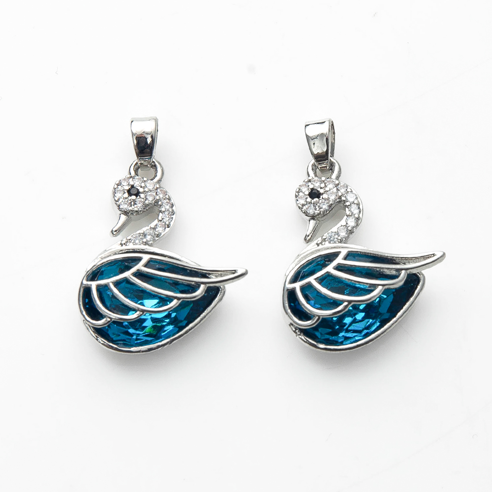 Pendentifs cristal, laiton, avec cristal, cygne, Placage de couleur argentée, DIY & pavé de micro zircon, protéger l'environnement, sans nickel, plomb et cadmium, 18.36x6.23x26.50mm, 20PC/sac, Vendu par sac