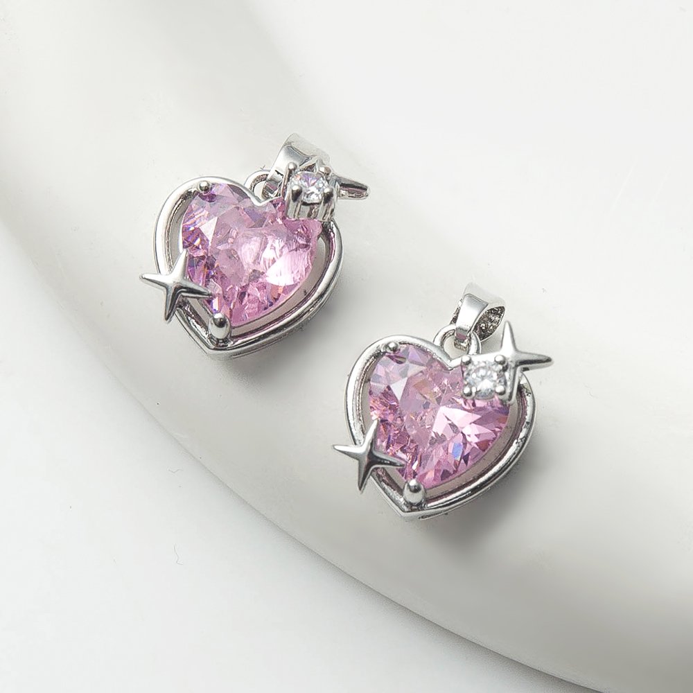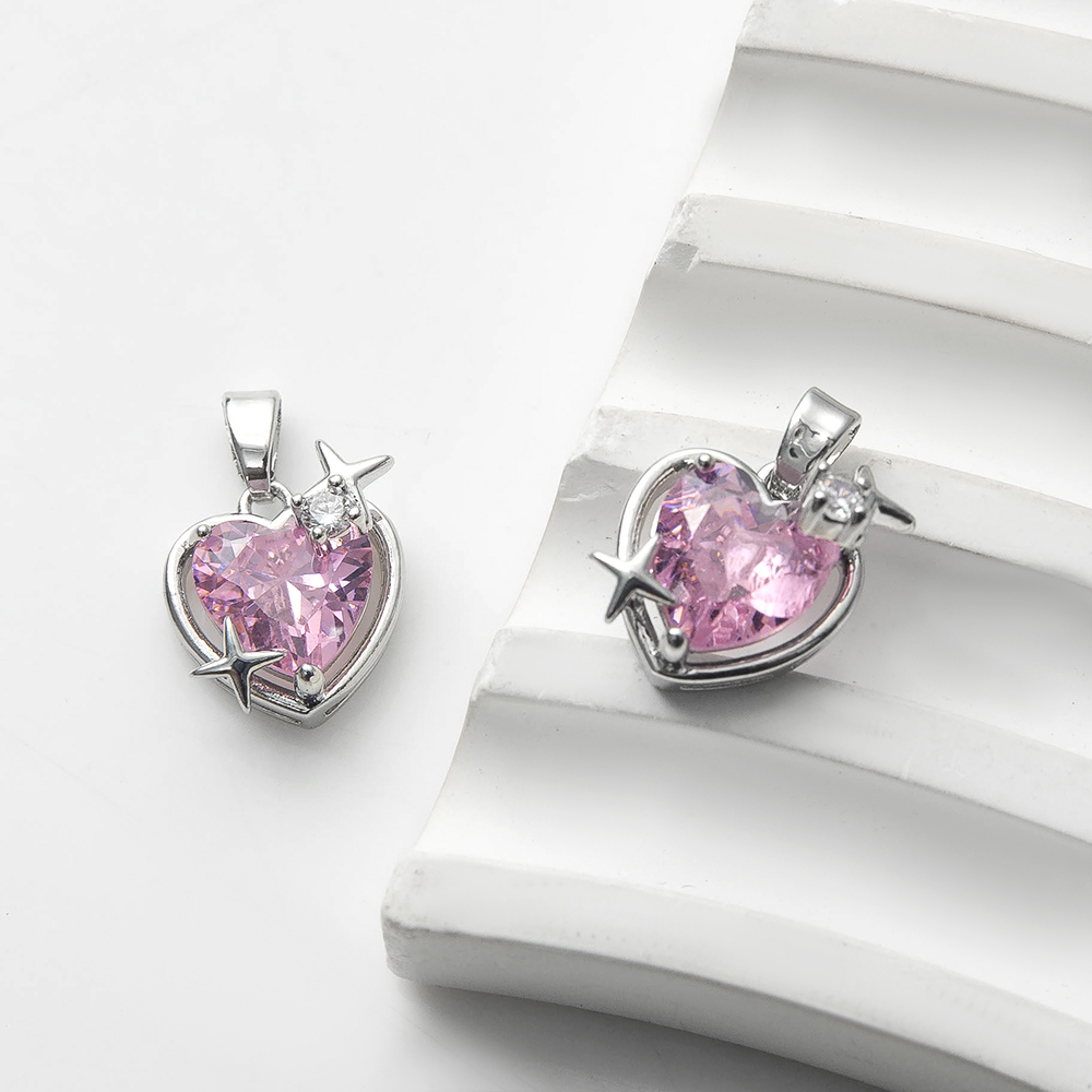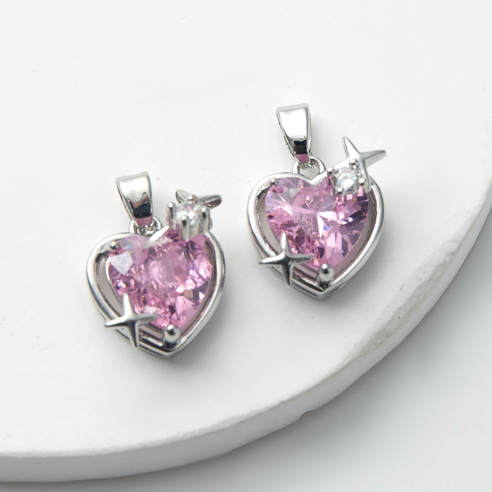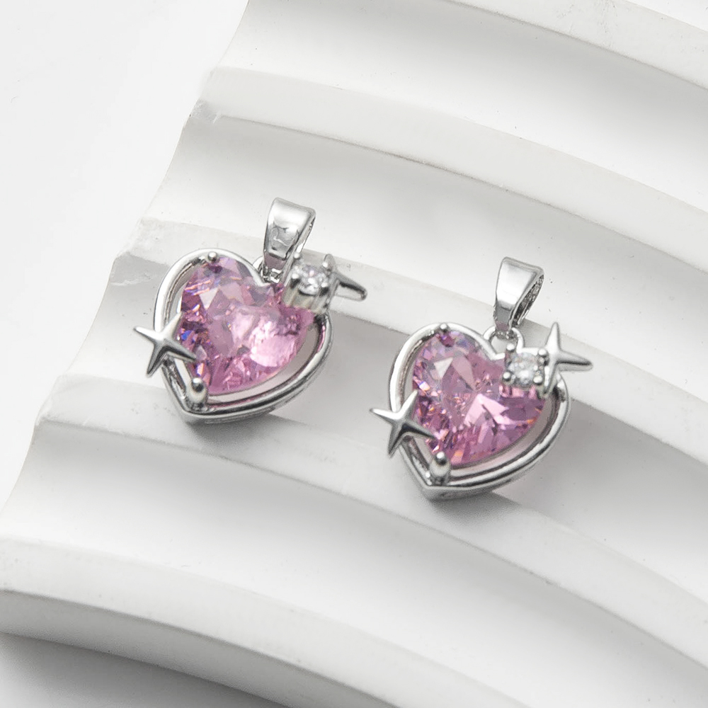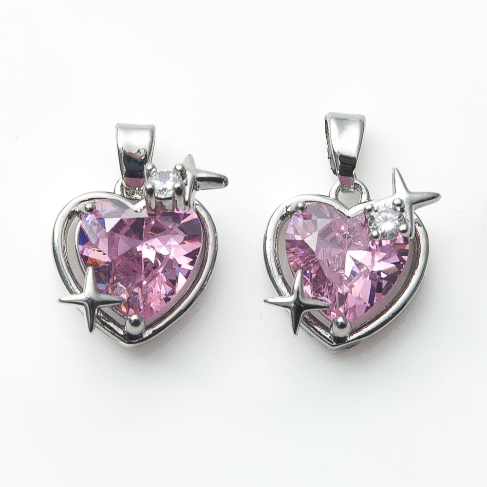 Pendentifs cristal, laiton, avec zircon cubique & cristal, coeur, Placage de couleur argentée, DIY, rose, protéger l'environnement, sans nickel, plomb et cadmium, 12x8.10x17.90mm, 20PC/sac, Vendu par sac