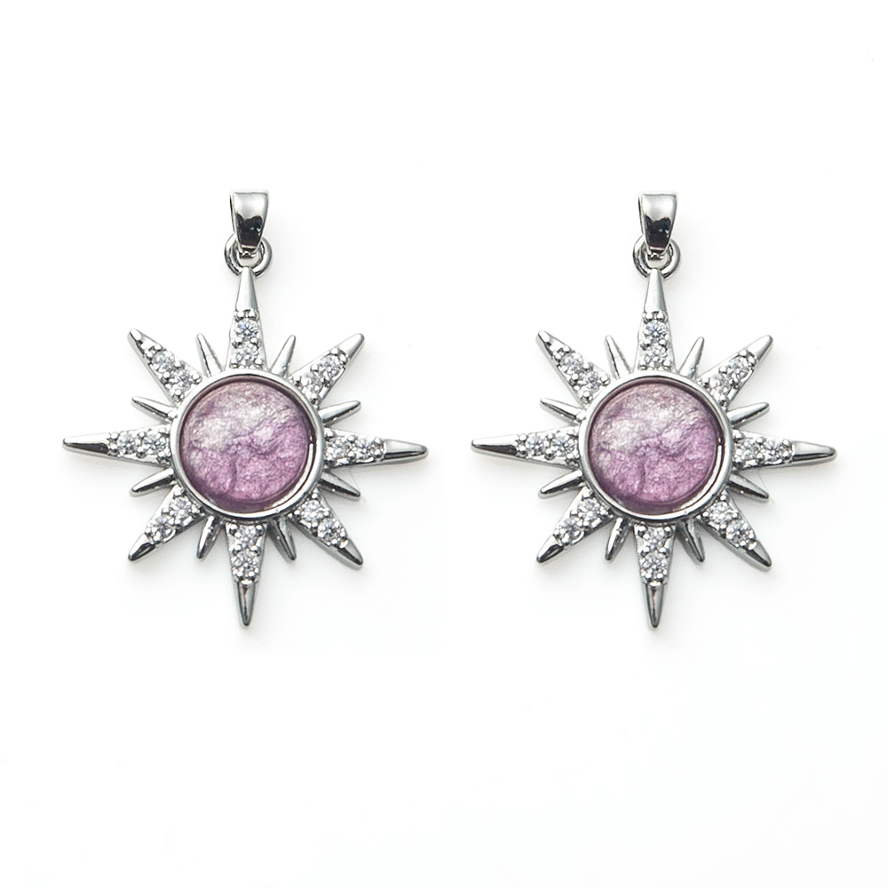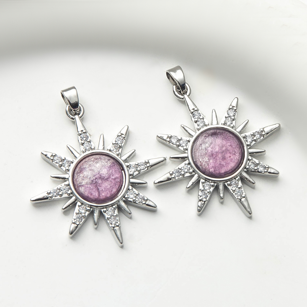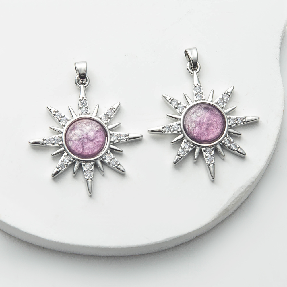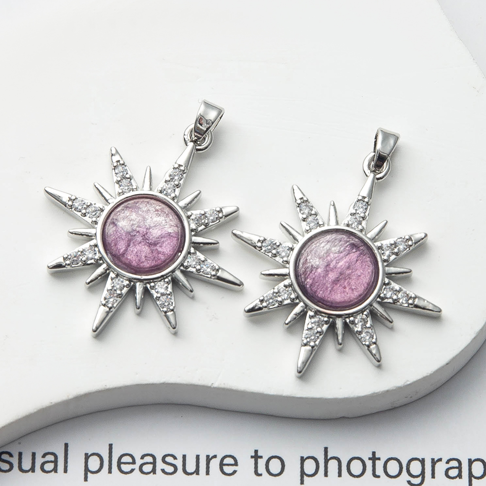 Pendentifs cristal, laiton, avec cristal, soleil, Placage de couleur argentée, DIY & pavé de micro zircon, rose, protéger l'environnement, sans nickel, plomb et cadmium, 28.10x4.92x35.36mm, 20PC/sac, Vendu par sac