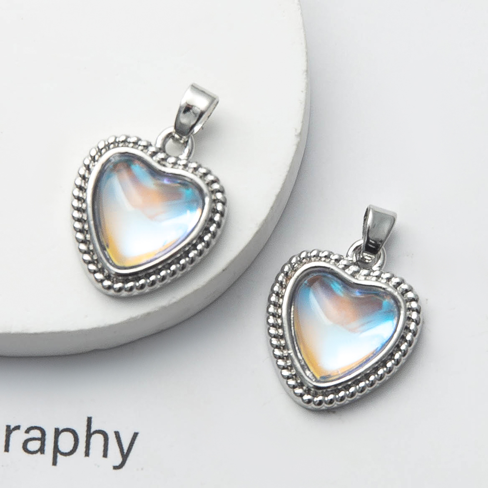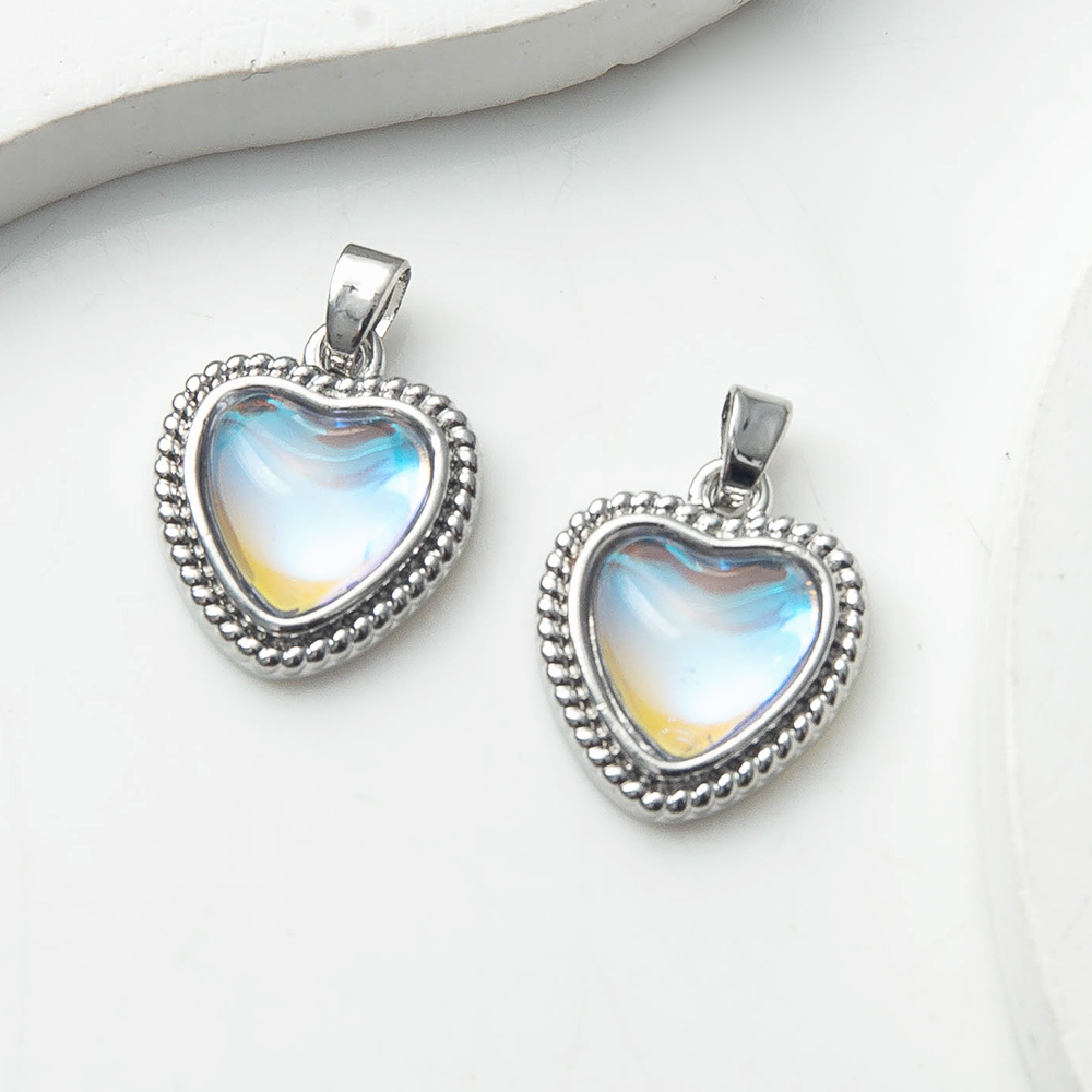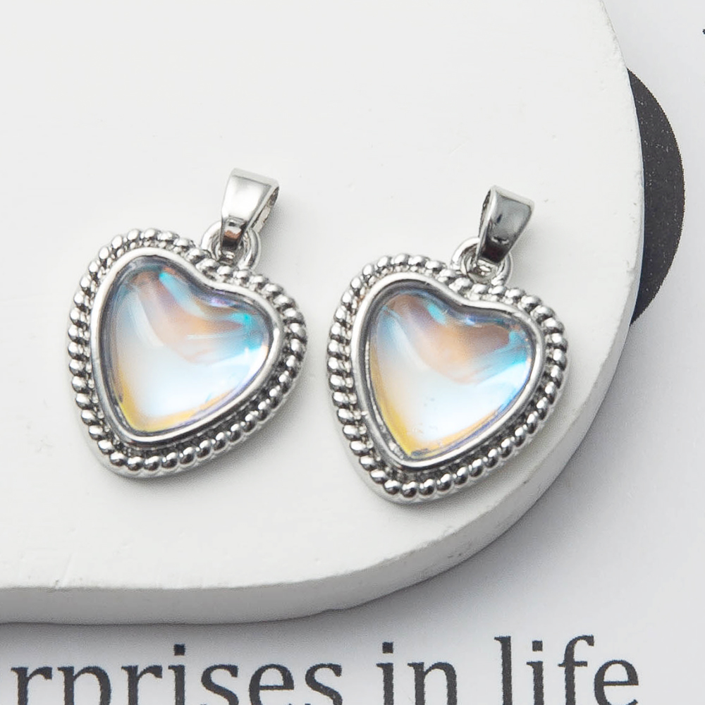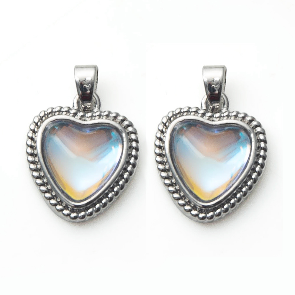 Pendentifs cristal, laiton, avec cristal, coeur, Placage de couleur argentée, DIY & pavé de micro zircon, protéger l'environnement, sans nickel, plomb et cadmium, 13.80x5.33x20.60mm, 20PC/sac, Vendu par sac