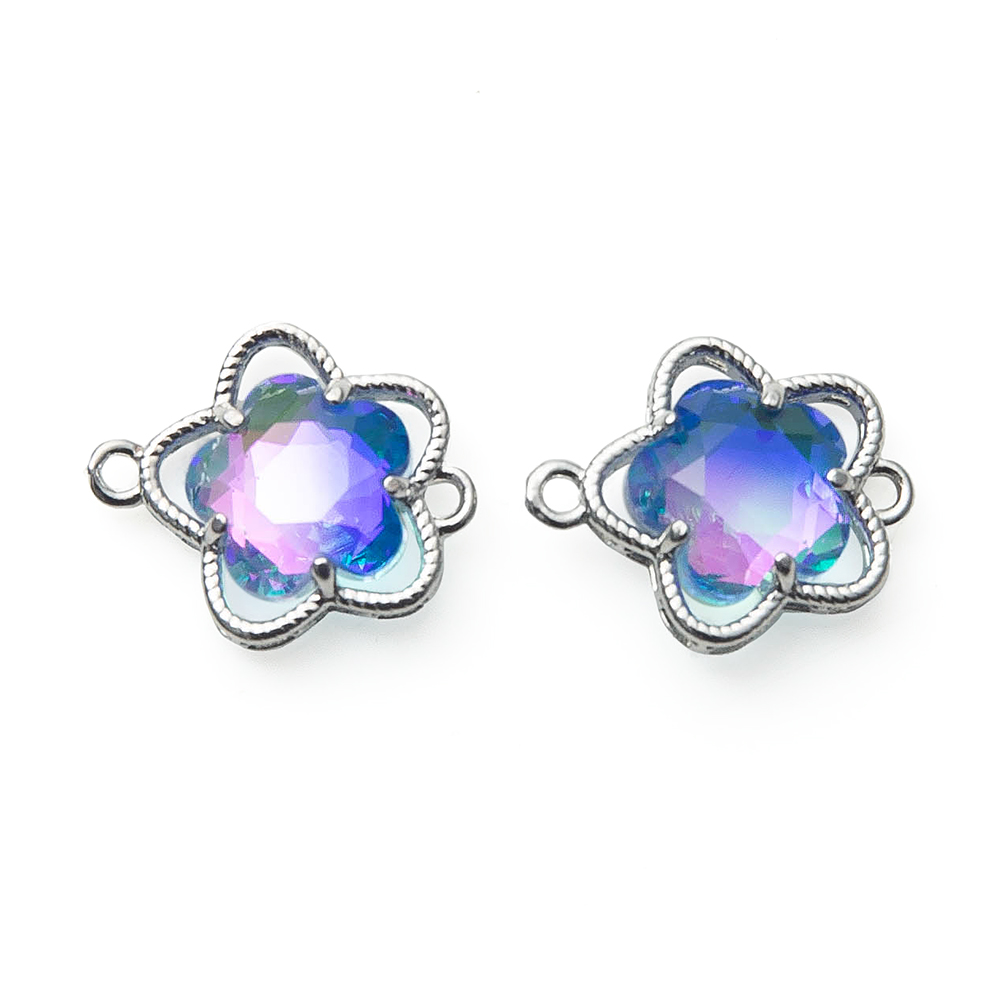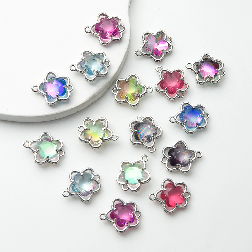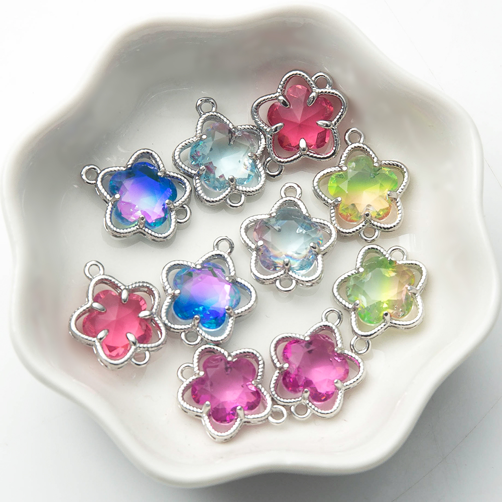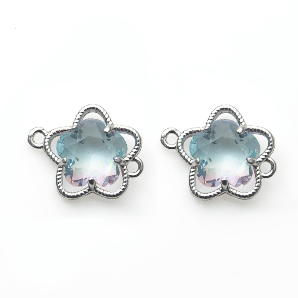 Pendentifs cristal, laiton, avec cristal, fleur, Placage de couleur argentée, DIY & boucle de 1/1, plus de couleurs à choisir, protéger l'environnement, sans nickel, plomb et cadmium, 14.46x5.43x17.52mm, 20PC/sac, Vendu par sac