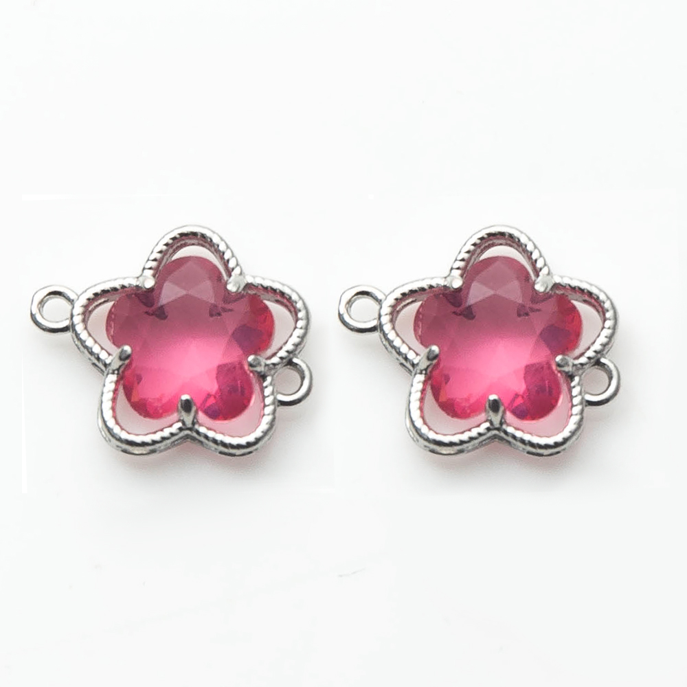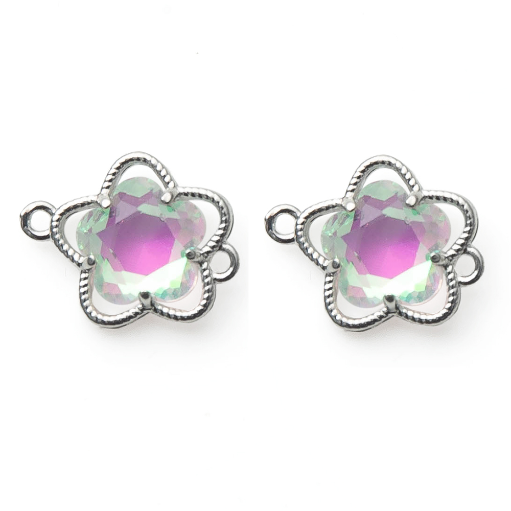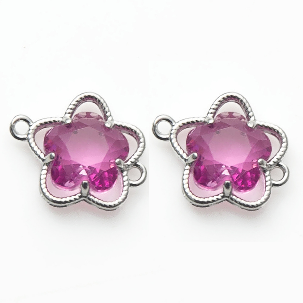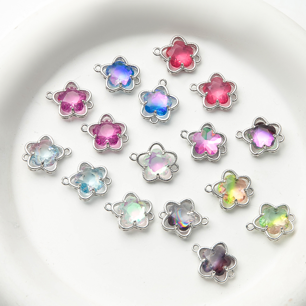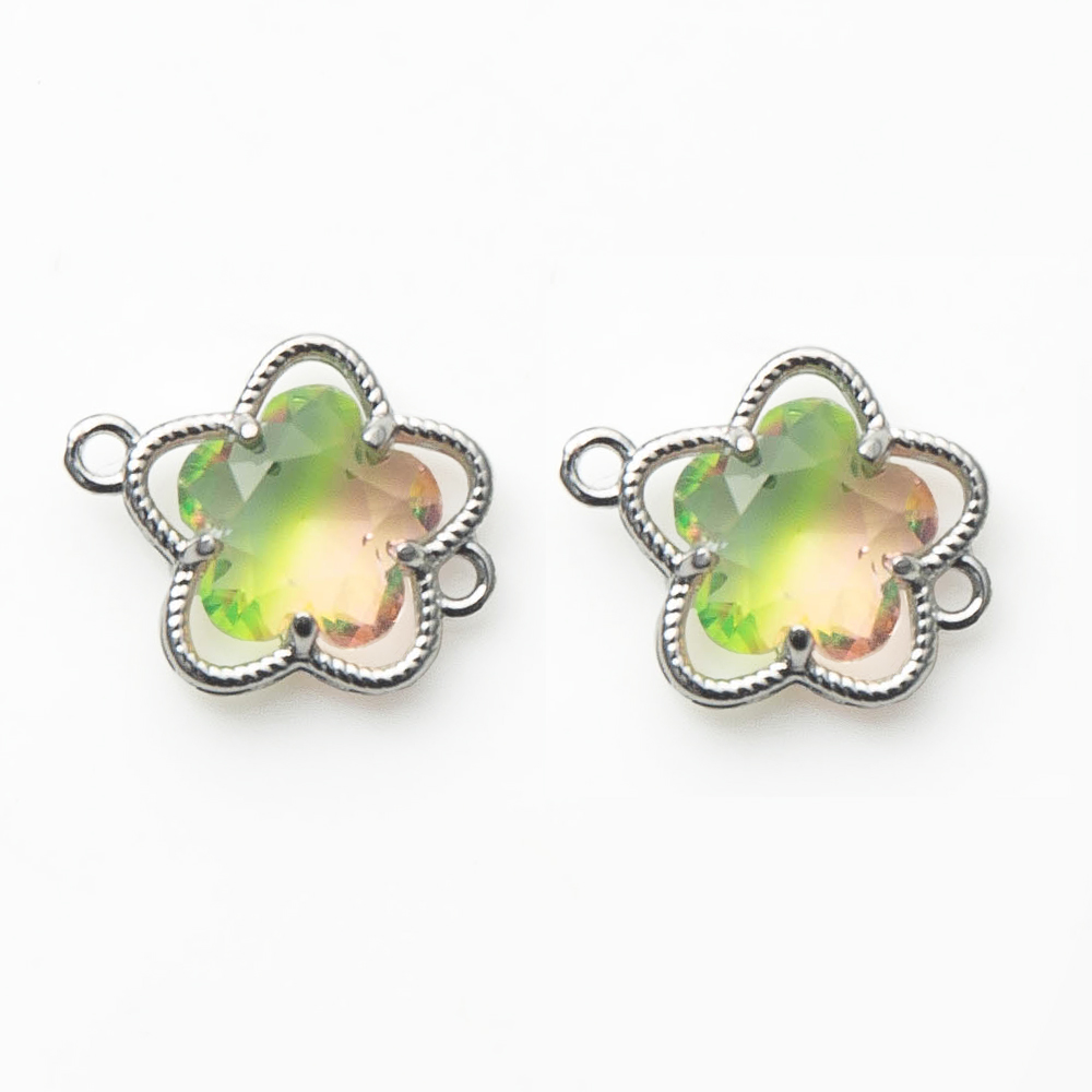 Pendentifs cristal, laiton, avec cristal, fleur, Placage de couleur argentée, DIY & boucle de 1/1, plus de couleurs à choisir, protéger l'environnement, sans nickel, plomb et cadmium, 14.46x5.43x17.52mm, 20PC/sac, Vendu par sac