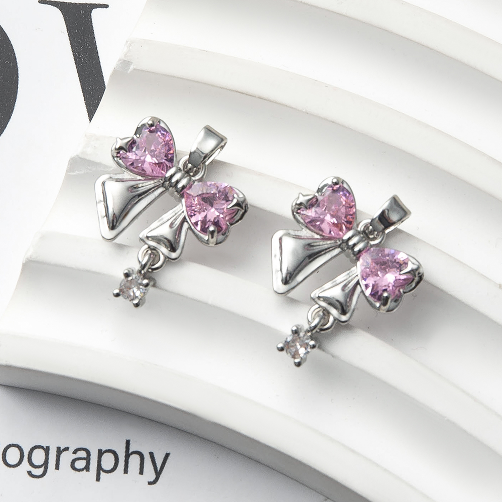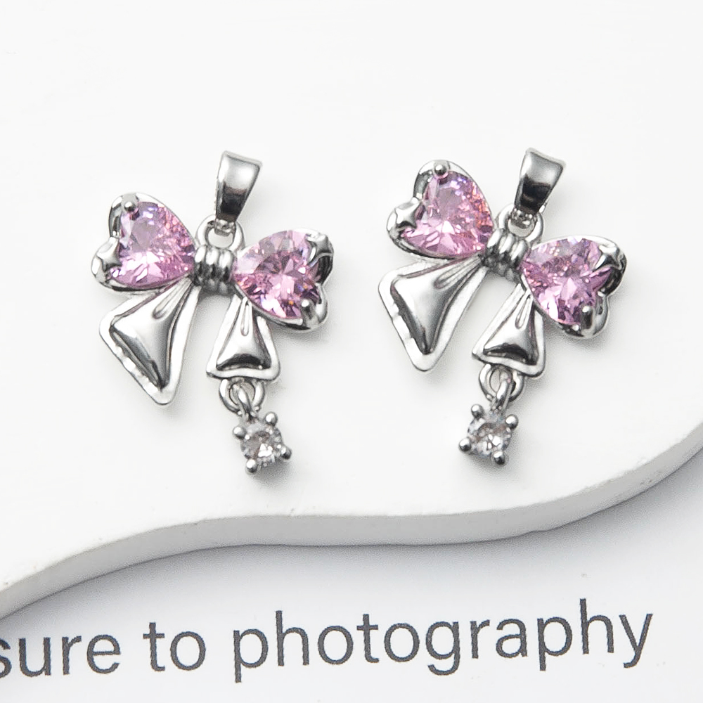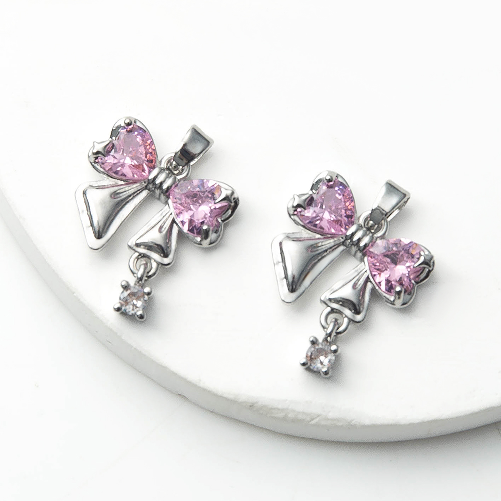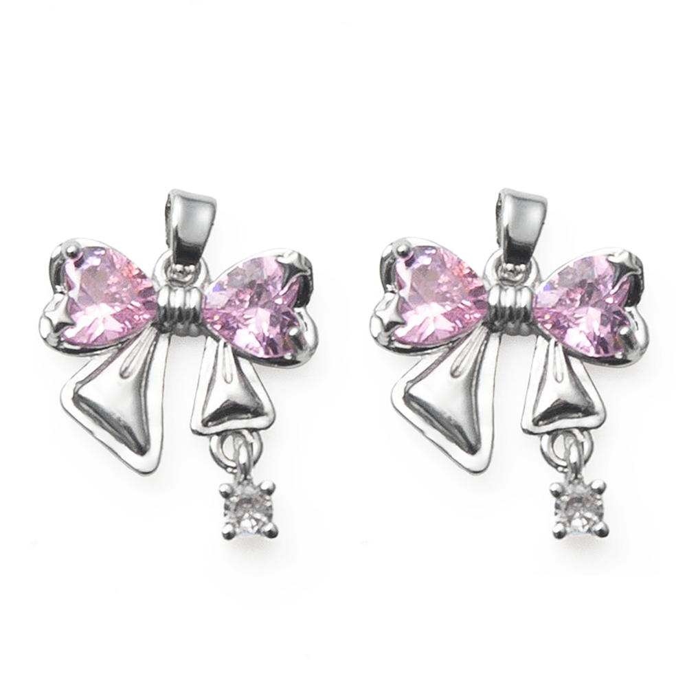 Pendentifs cristal, laiton, avec zircon cubique & cristal, Noeud papillon, Placage de couleur argentée, DIY, rose, protéger l'environnement, sans nickel, plomb et cadmium, 16.58x4.20x22.70mm, 20PC/sac, Vendu par sac