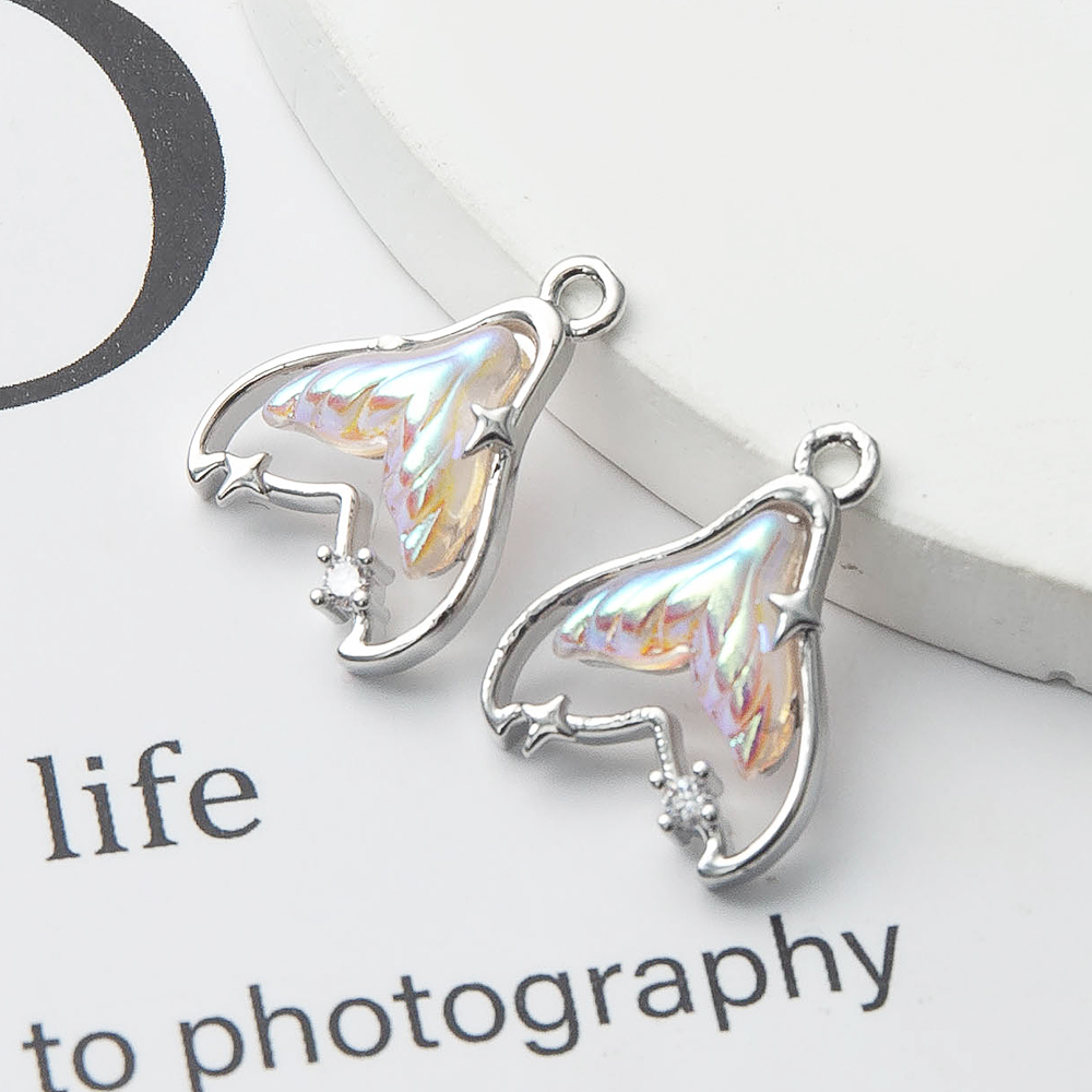 Pendentifs cristal, laiton, avec cristal, coeur, Placage de couleur argentée, DIY & pavé de micro zircon, protéger l'environnement, sans nickel, plomb et cadmium, 13.80x5.33x20.60mm, 20PC/sac, Vendu par sac
