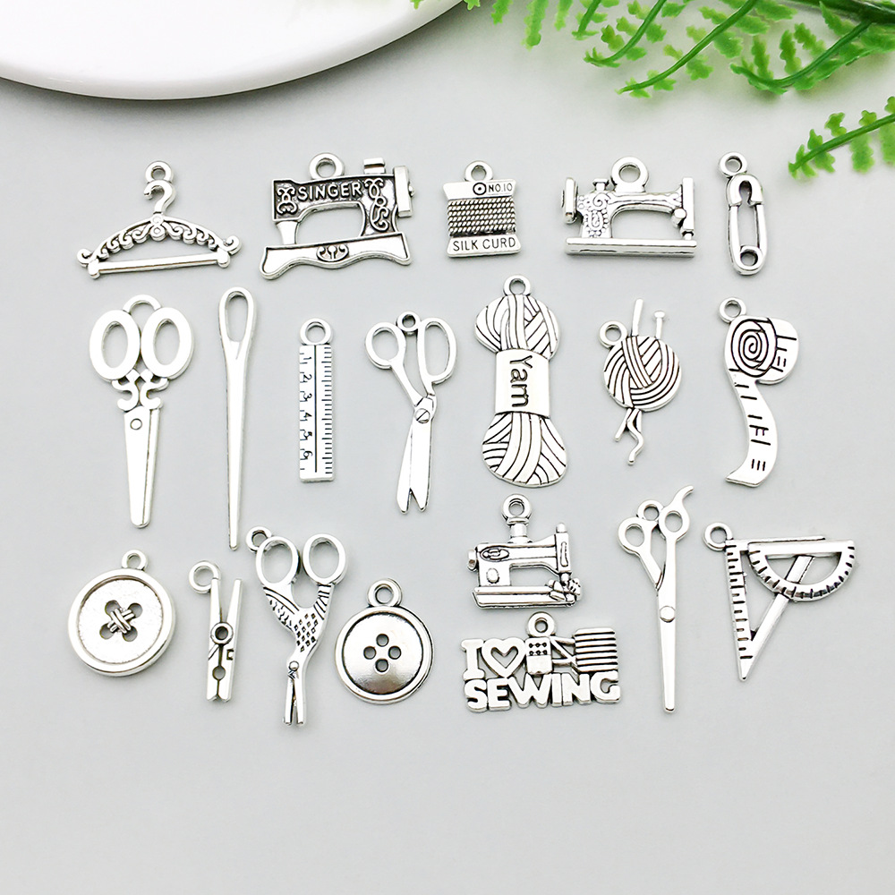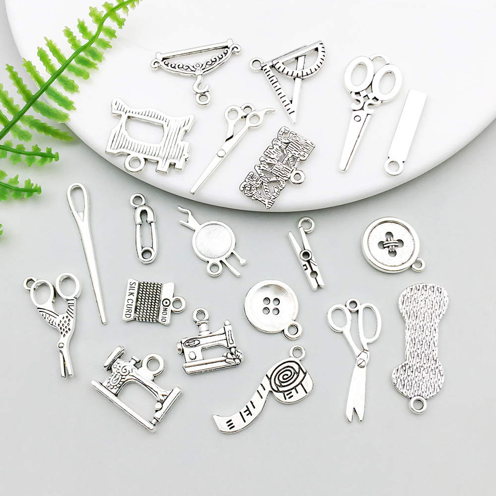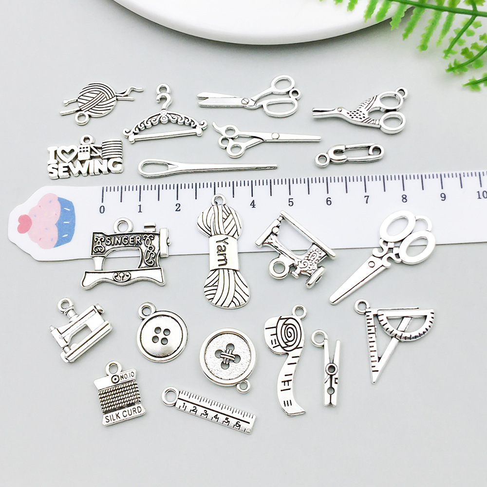 1:Mix 20pcs ancient silver sewing machine series2:1 ancient silver crane scissors 14*26mm3:1 ancient silver clothes hanger 12*18mm4:1 ancient silver sewing machine 14*15mm5:1 ancient silver wool ball 12*24mm6:1 ancient silver scissors 14*32mm7:1 ancient silver sewing machine 12*20mm8:1 ancient silver spool 10*15mm9:silver scissors 14*32mm10:1 ancient silver measuring tape 10*27mm11:1 ancient silver button 13*16mm12:1 ancient silver sewing machine 24*25mm13:1 ancient silver pin 6*19mm14:1 ancient silver clip 5*15mm15:1 ancient silver ruler 5*24mm16:1 ancient silver ruler 20*21mm17:1 ancient silver wool ball 12*31mm18:1 ancient silver needle head 5*38mm19:1 ancient silver english letter 20*12mm20:1 ancient silver scissors 11*30mm21:1 ancient silver button 17*14mm