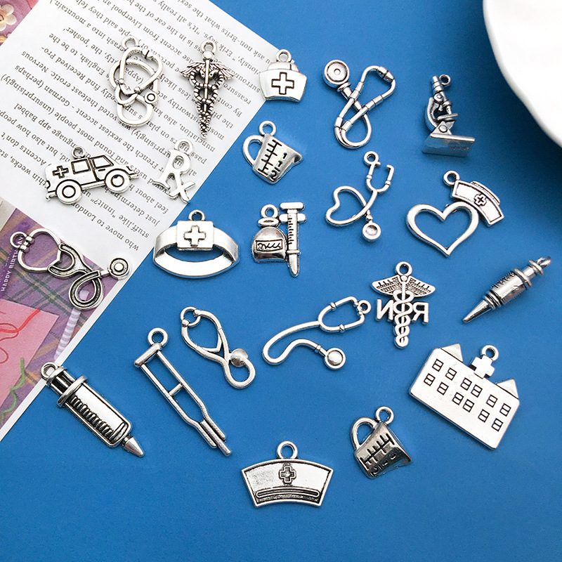 1:M434-Guyin New Medical 18 models 4 each -89.5g2:Medical Series Mix 20-SN03(30g)3:1 ancient silver syringe 8 × 30mm-10430/1.5g4:1 ancient silver microscope 10x19mm-10431/2.5g5:1 ancient silver medical 18x14mm-10432/1.7g6:1 ancient silver medical stethoscope 13 × 22mm-10433/1.3g7:1 ancient silver medical Rx letter 9 × 14mm-10434/2g8:1 ancient silver ambulance 21 × 13mm-10435/1.3g9:1 ancient silver medical stethoscope 13 × 21mm-10436/0.6g10:1 ancient silver medical stethoscope 15 × 20mm-10437/1.1g11:1 ancient silver medical cup 14 × 14mm-10438/0.7g12:1 ancient silver medical syringe 13 × 18mm-10439/1.3g13:1 ancient silver nurse cap 11 × 12mm-10440/1.2g14:1 ancient silver medical stethoscope 9 × 23mm-10441/1.1g15:1 ancient silver medical double snake crutch 13 × 24mm-10442/1.5g16:1 ancient silver nurse love cap 23 × 20mm-10443/1.5g17:1 ancient silver medical stethoscope 15 × 27mm-10604/1.2g18:1 Guyin Medical Hospital 21x24mm-10605/3.8g19:1 ancient silver medical syringe 6 × 24mm-10606/2.1g20:1 ancient silver medical earpiece 17x21mm-10607/1.6g21:1 ancient silver medical crutch 10 × 32mm-12148/1.3g22:1 ancient silver letter RN double snake crutch 15 × 20mm-12149/1.4g23:1 ancient silver nurse cap 20 × 13mm-12151/0.8g