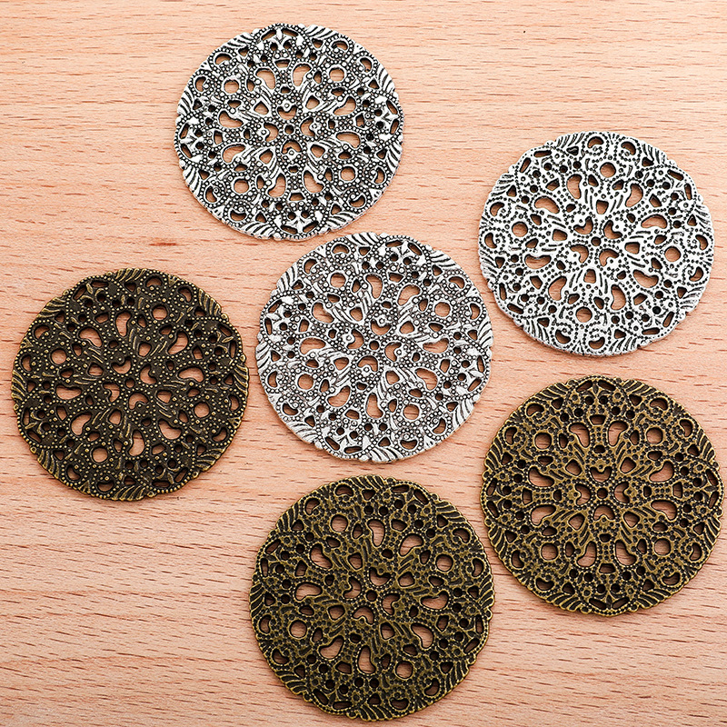 Pendentifs en alliage de zinc, Plat rond, Placage, DIY & creux, plus de couleurs à choisir, 41x41mm, Vendu par PC