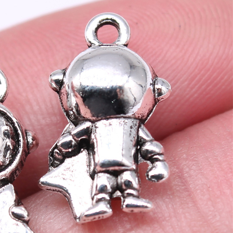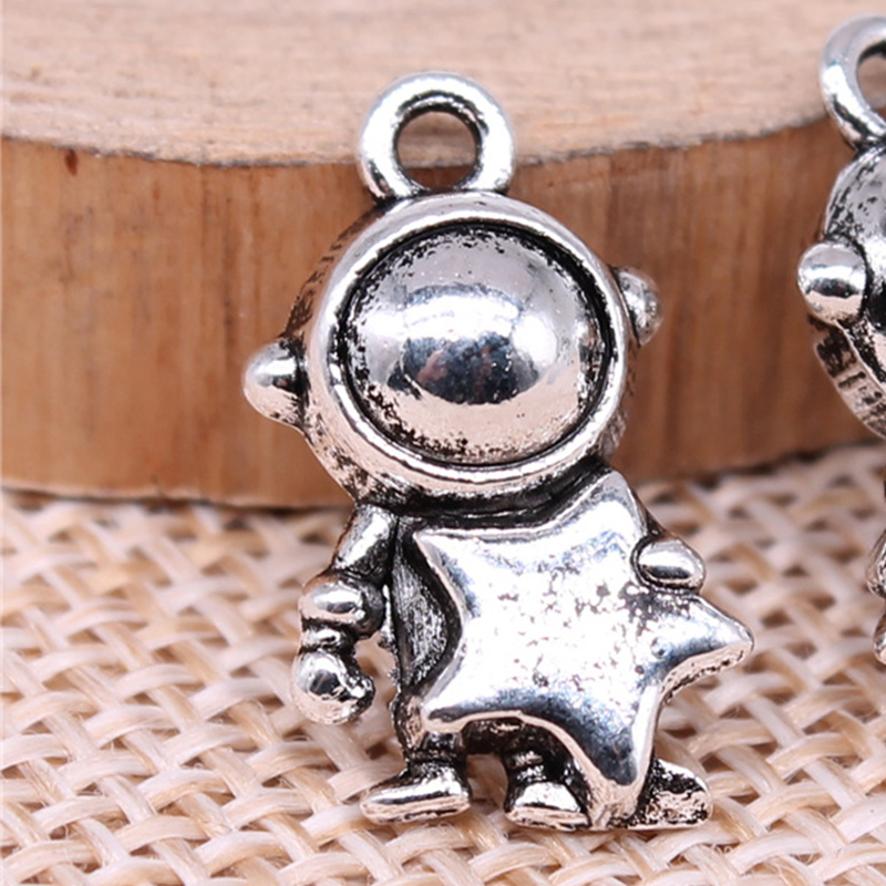 Pendentifs en forme de personnage en alliage de Zinc, astronaute, Plaqué de couleur d'argent, DIY, 18x10mm, 10PC/sac, Vendu par sac