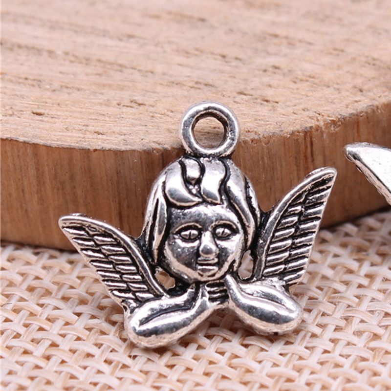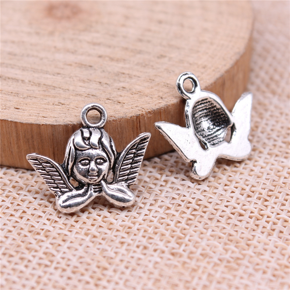 Pendentifs en forme de personnage en alliage de Zinc, ange, Plaqué de couleur d'argent, DIY, 19x17mm, 20PC/sac, Vendu par sac