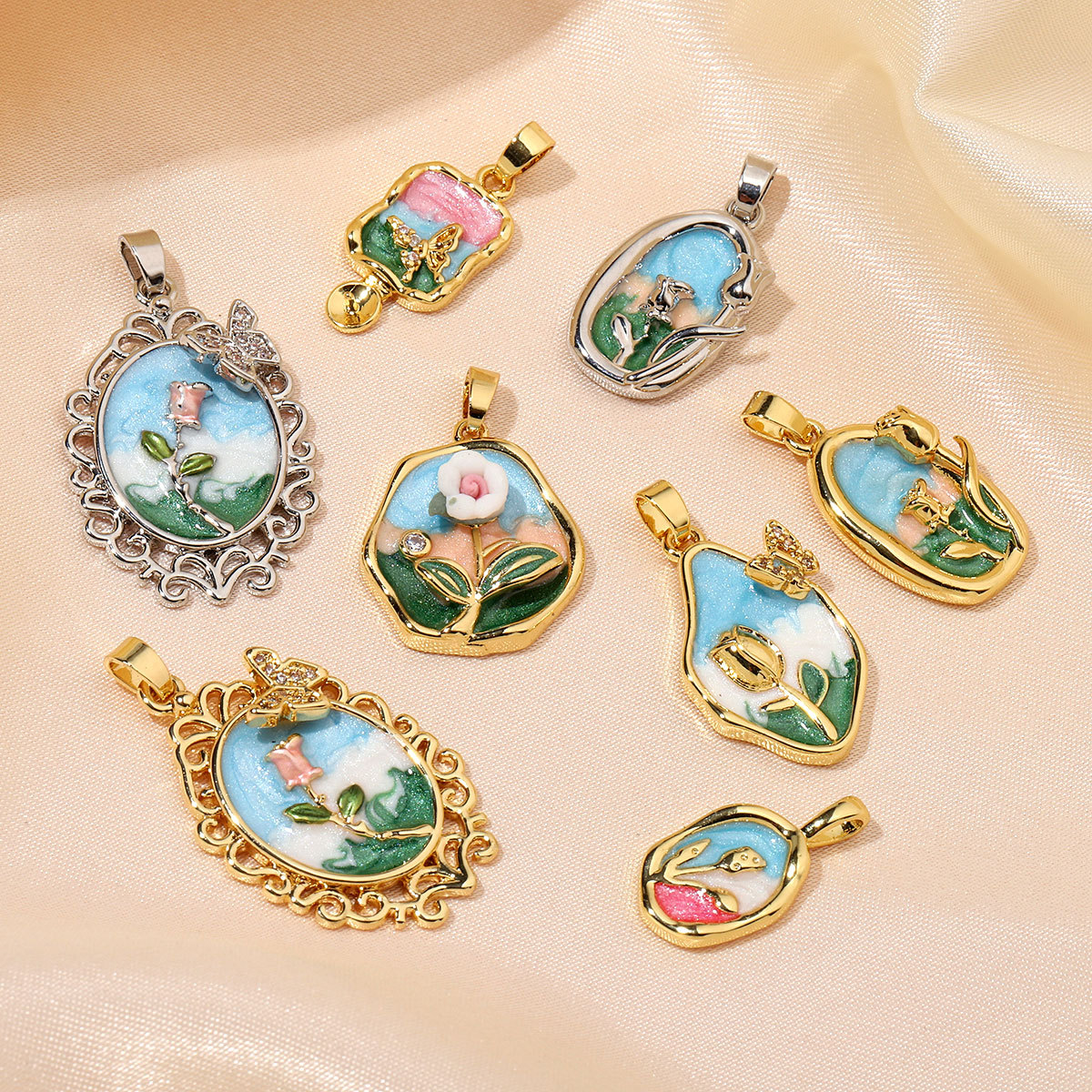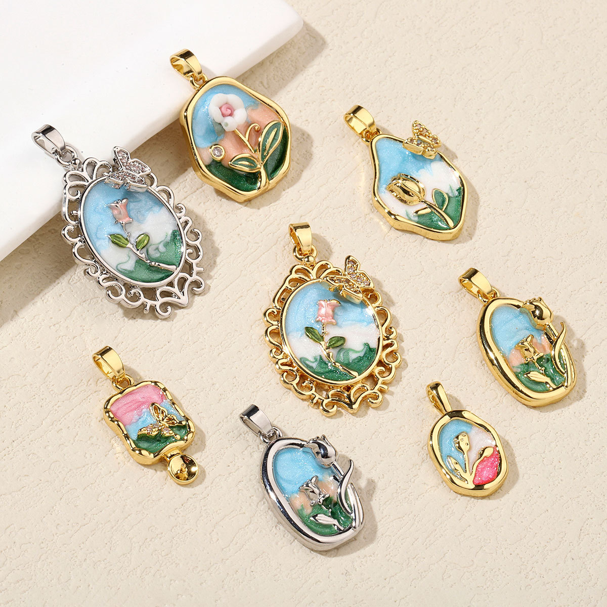 Pendentifs en laiton zircon cubique (CZ), DIY & pavé de micro zircon, plus de couleurs à choisir, Vendu par PC