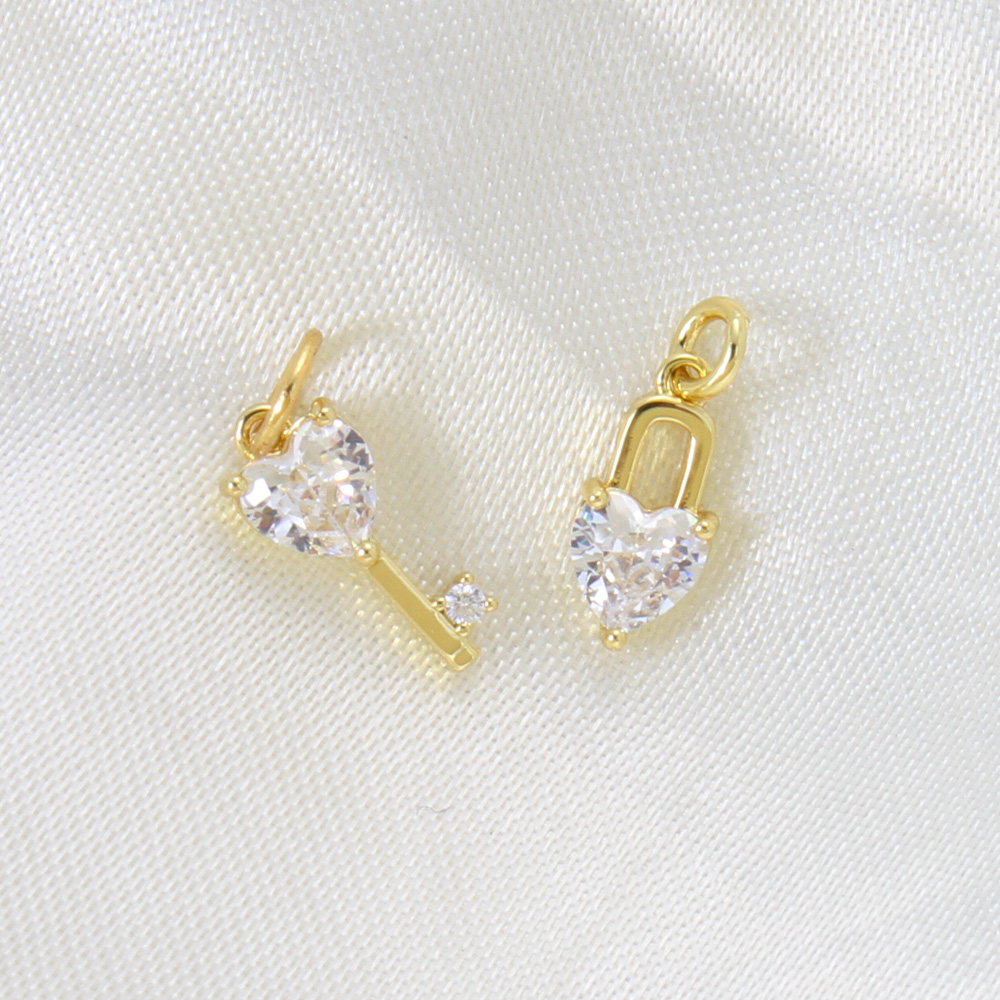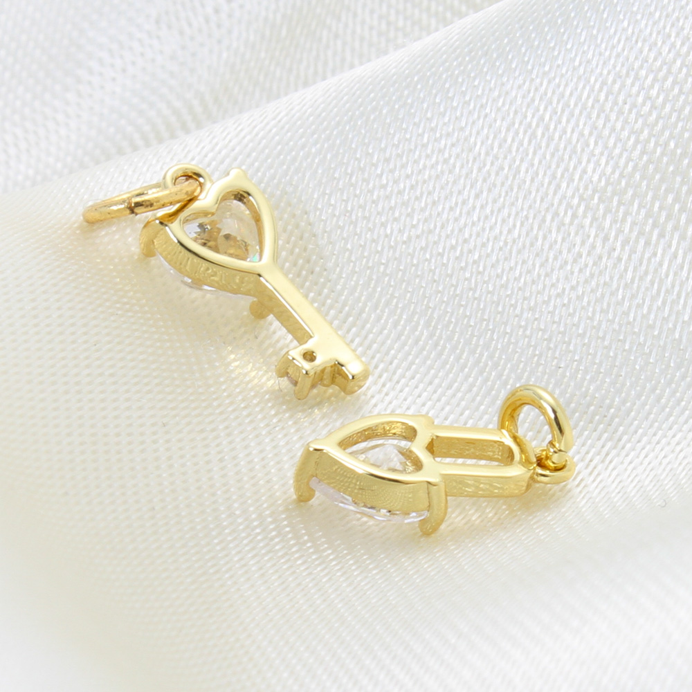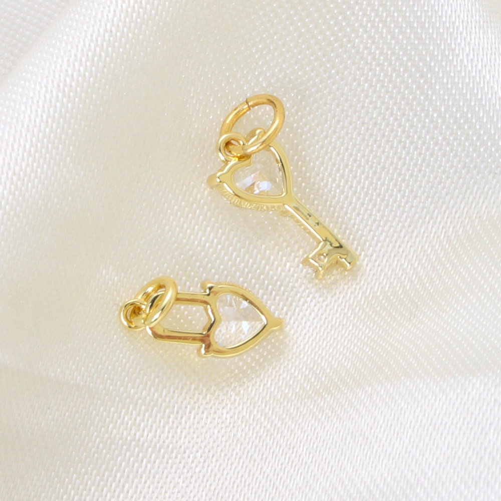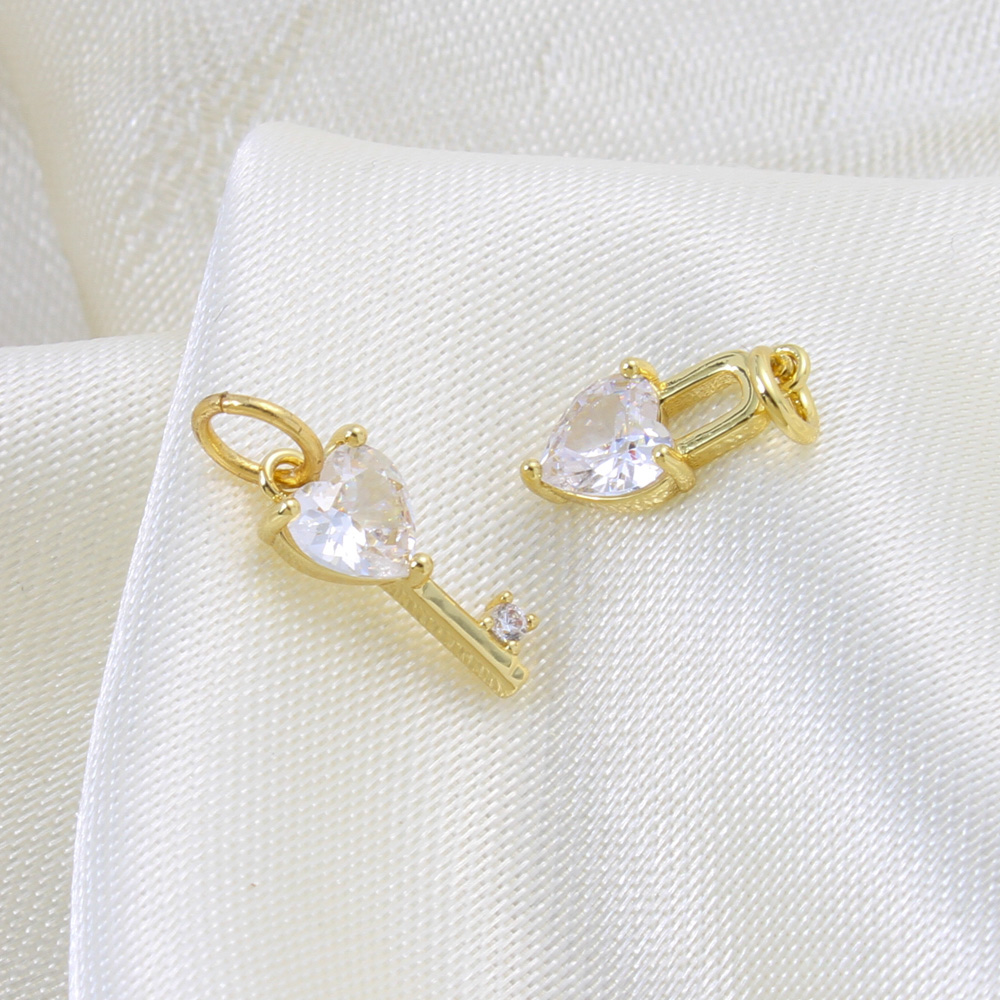 Pendentifs en laiton zircon cubique (CZ), Blocage et clé, Placage, DIY & pavé de micro zircon, doré, 12.30x5.20x2.80mm, Vendu par PC