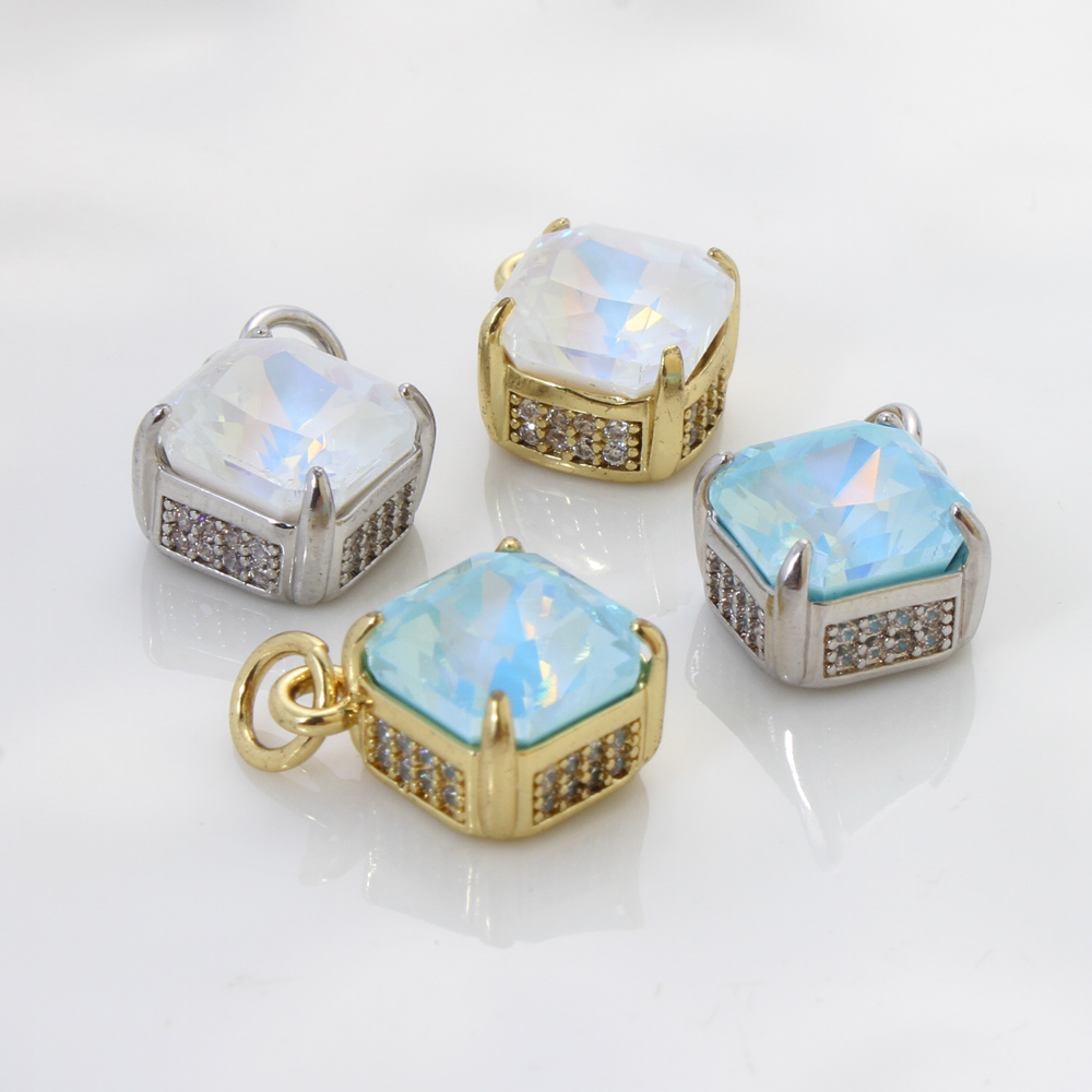 Pendentifs en laiton zircon cubique (CZ), cadre, Placage, DIY & pavé de micro zircon, plus de couleurs à choisir, 13.60x11x6.50mm, Vendu par PC