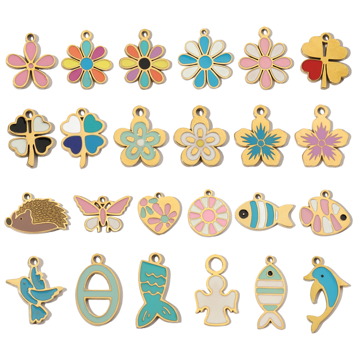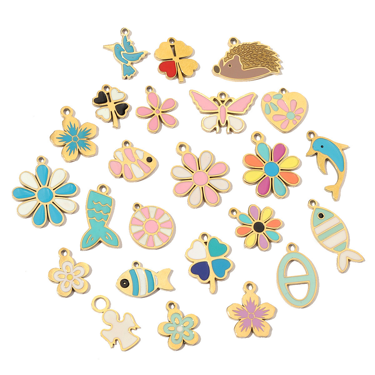 Pendentifs en titane, Acier titane, Placage de couleur d'or, DIY & styles différents pour le choix & émail, plus de couleurs à choisir, 3PC/sac, Vendu par sac