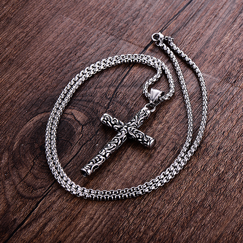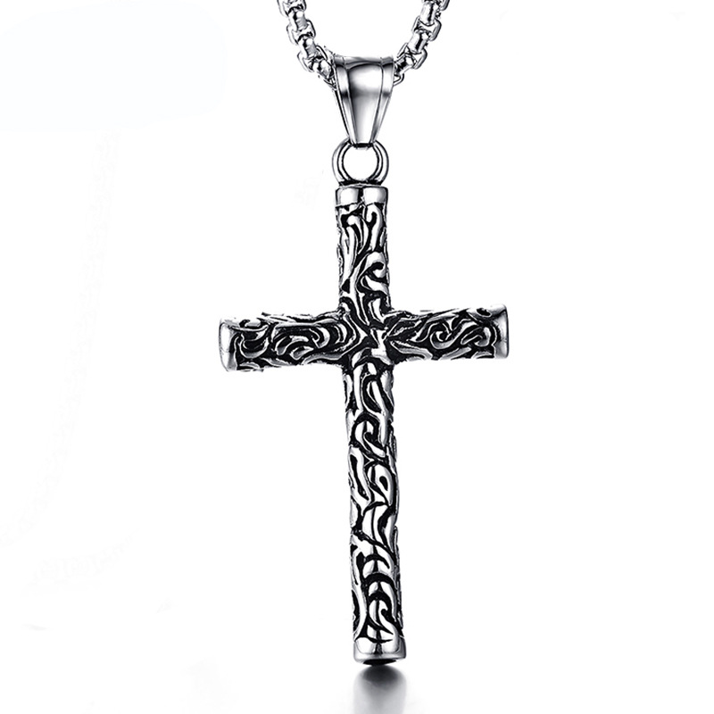 Pendentifs en titane, Acier titane, croix, gravé, Vintage & DIY & noircir, couleur originale, 30x55mm, Vendu par PC