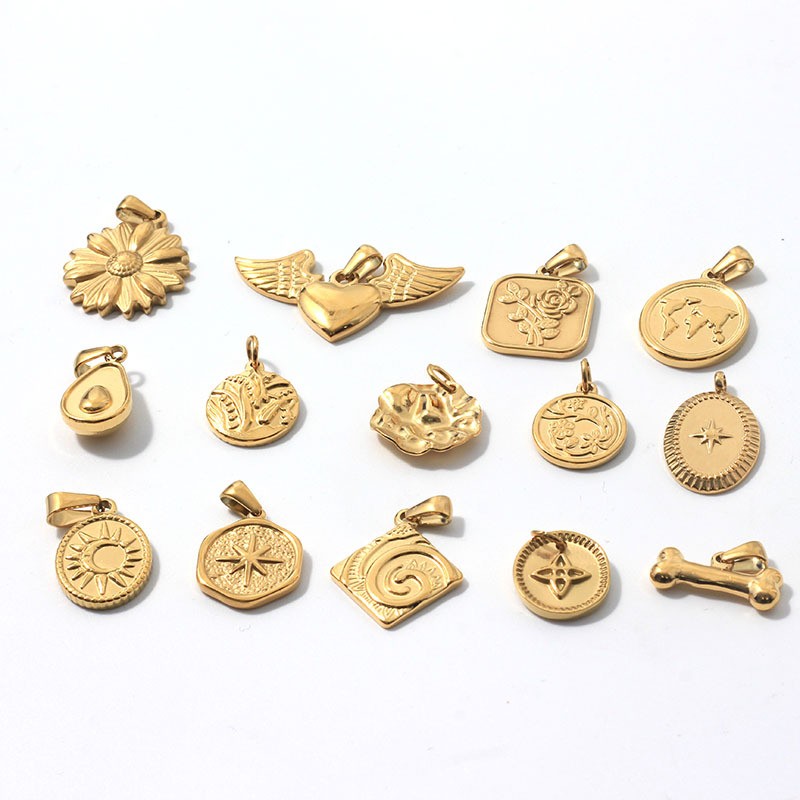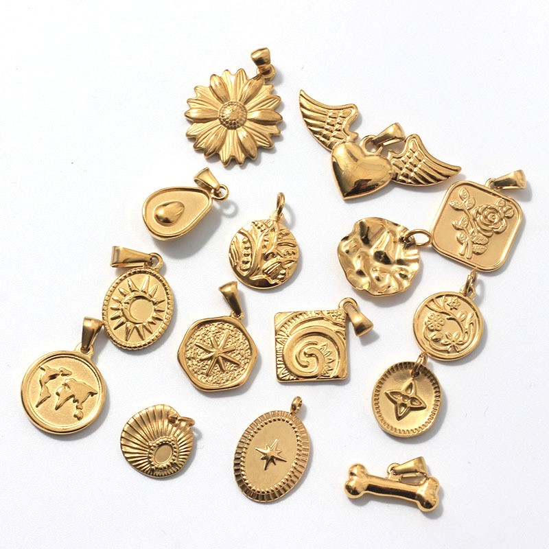 Pendentifs en titane, Acier titane, Plaqué or 18K, DIY, Vendu par PC