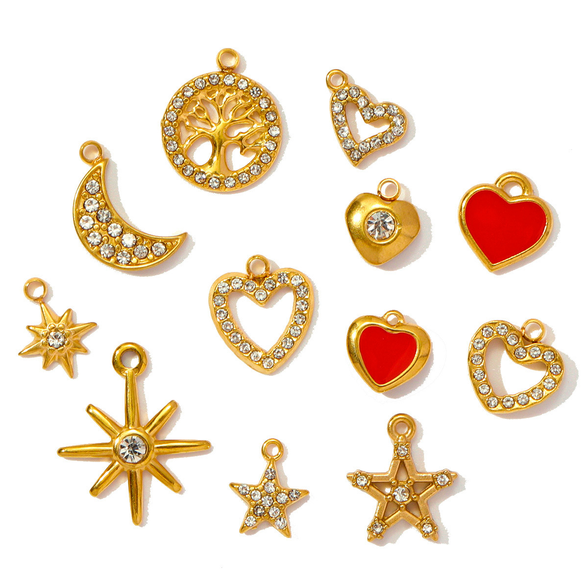 Pendentifs en titane, Acier titane, Placage de couleur d'or, DIY & émail & avec strass, doré, 3PC/sac, Vendu par sac