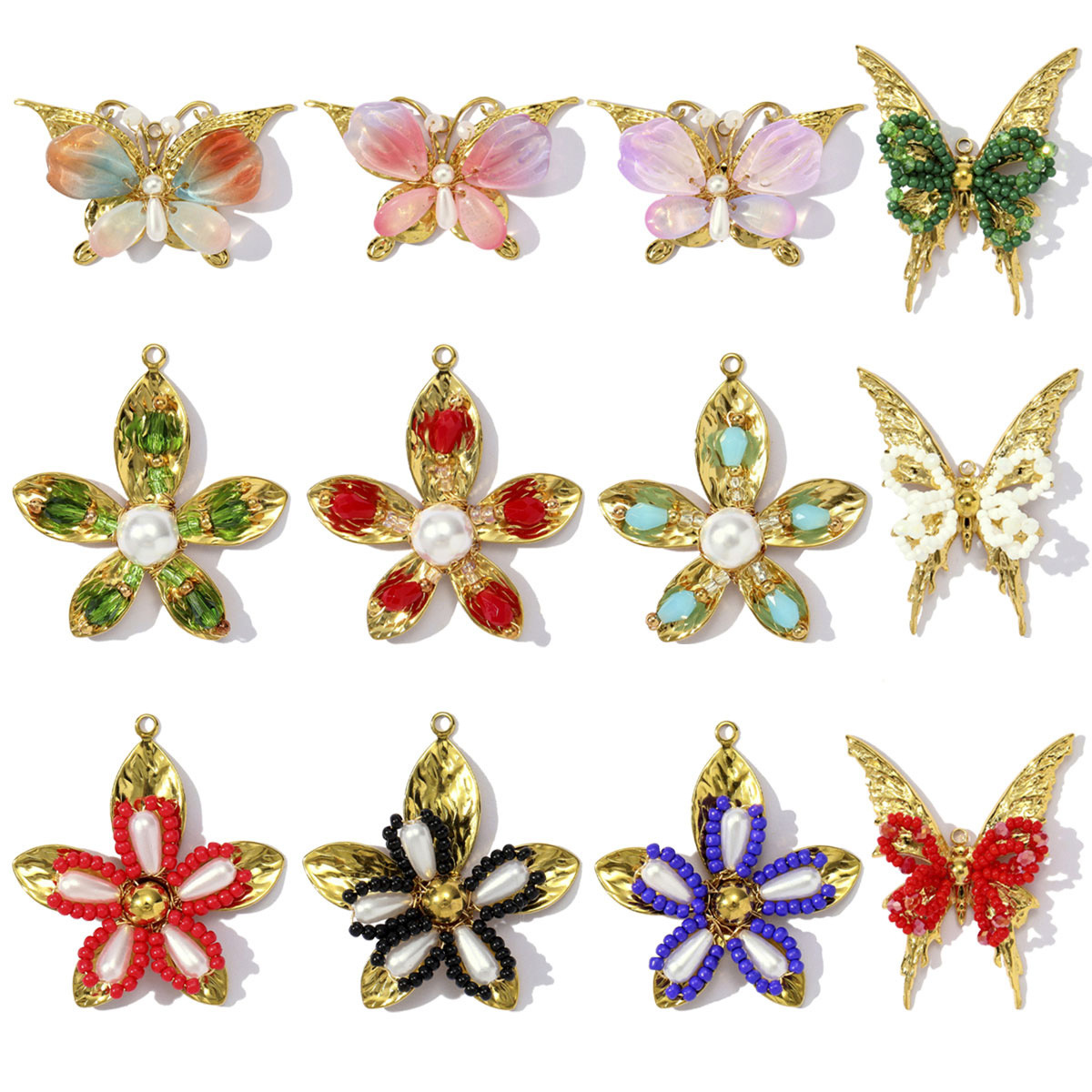 Pendentifs en titane, Acier titane, avec Des billes de verre & Plastique ABS perle & résine, Placage de couleur d'or, DIY, plus de couleurs à choisir, 3PC/sac, Vendu par sac
