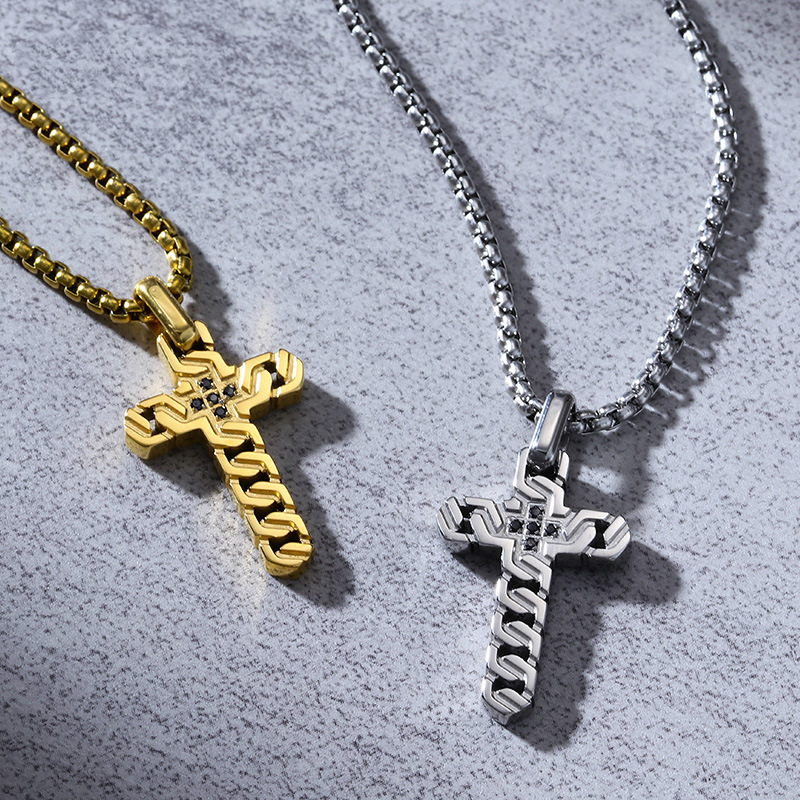 Pendentifs en titane, Acier titane, croix, Placage, unisexe & styles différents pour le choix & avec strass, 34x19x3mm, Vendu par PC