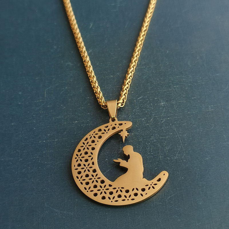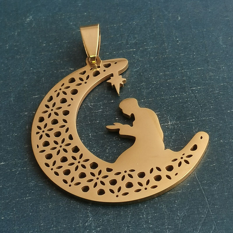 Pendentifs en titane, Acier titane, lune, Placage de couleur d'or, DIY, doré, Vendu par PC