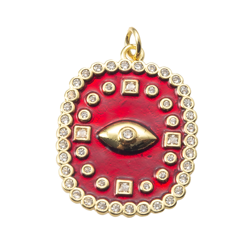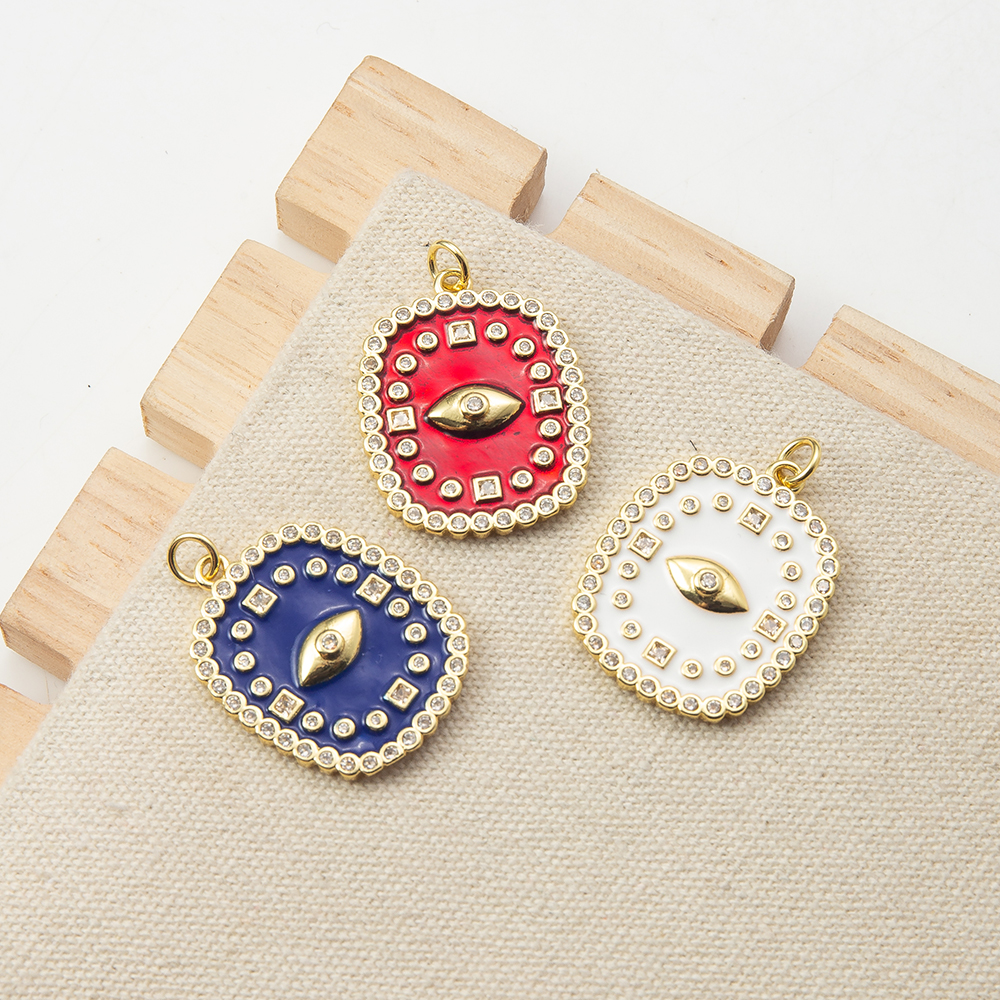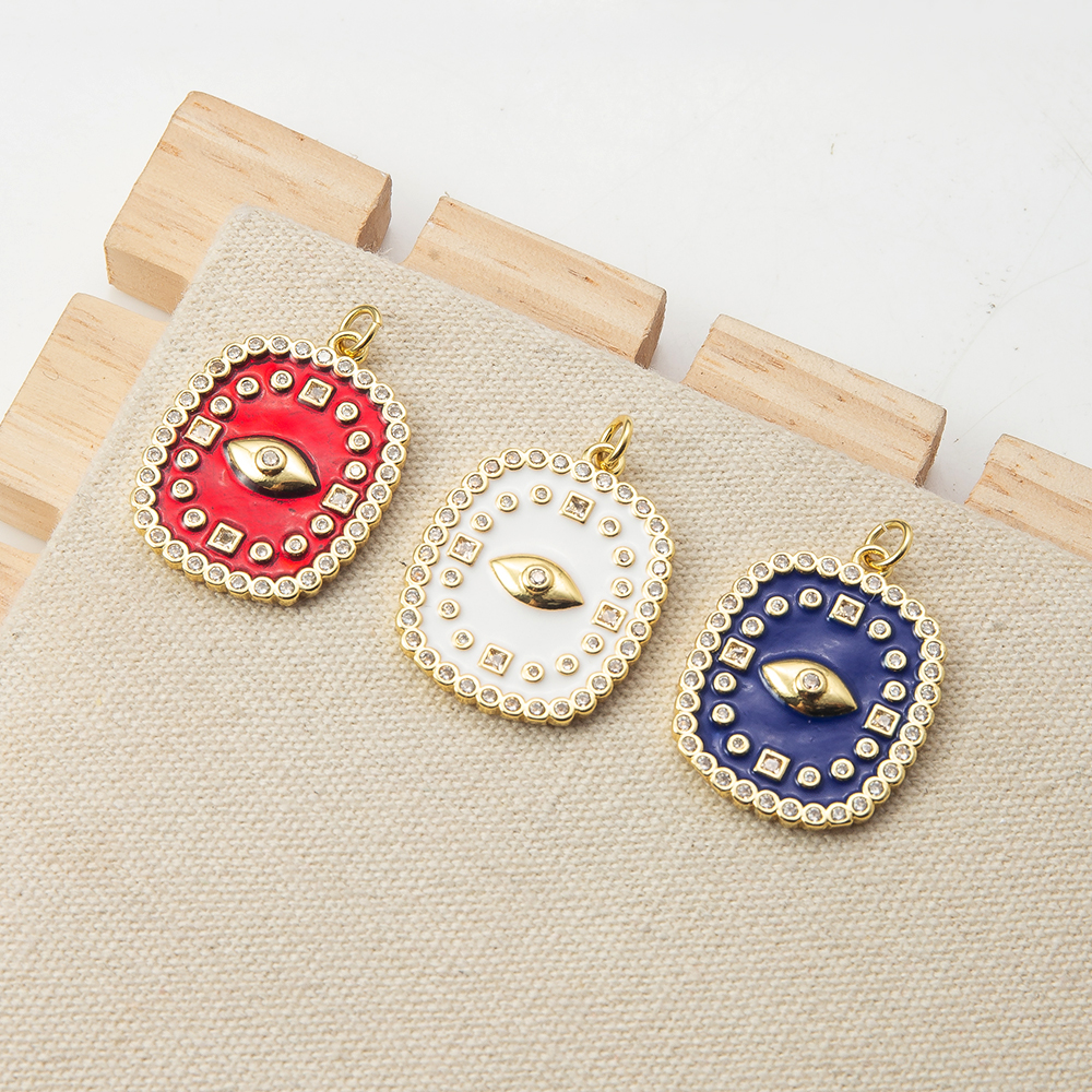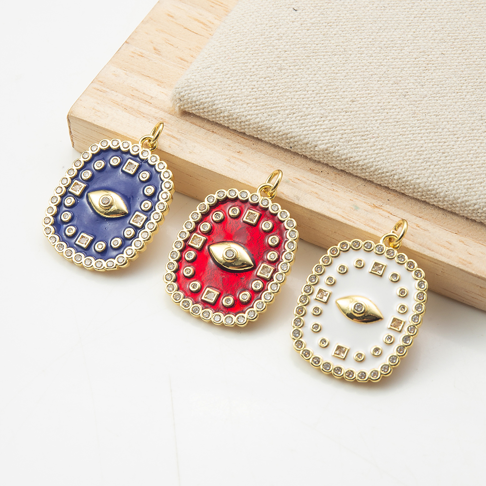 Pendentifs mauvais oeil, laiton, cadre, Placage, DIY & pavé de micro zircon, plus de couleurs à choisir, protéger l'environnement, sans nickel, plomb et cadmium, 21.43x2.95x30.60mm, Vendu par PC
