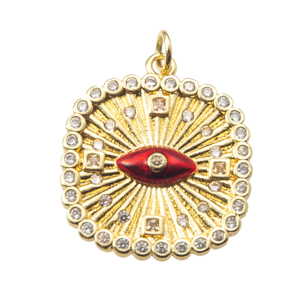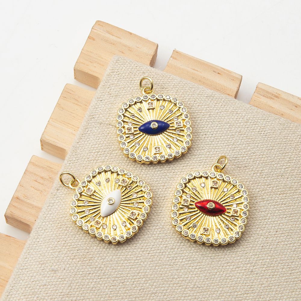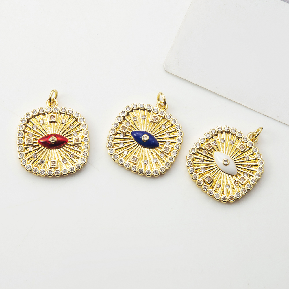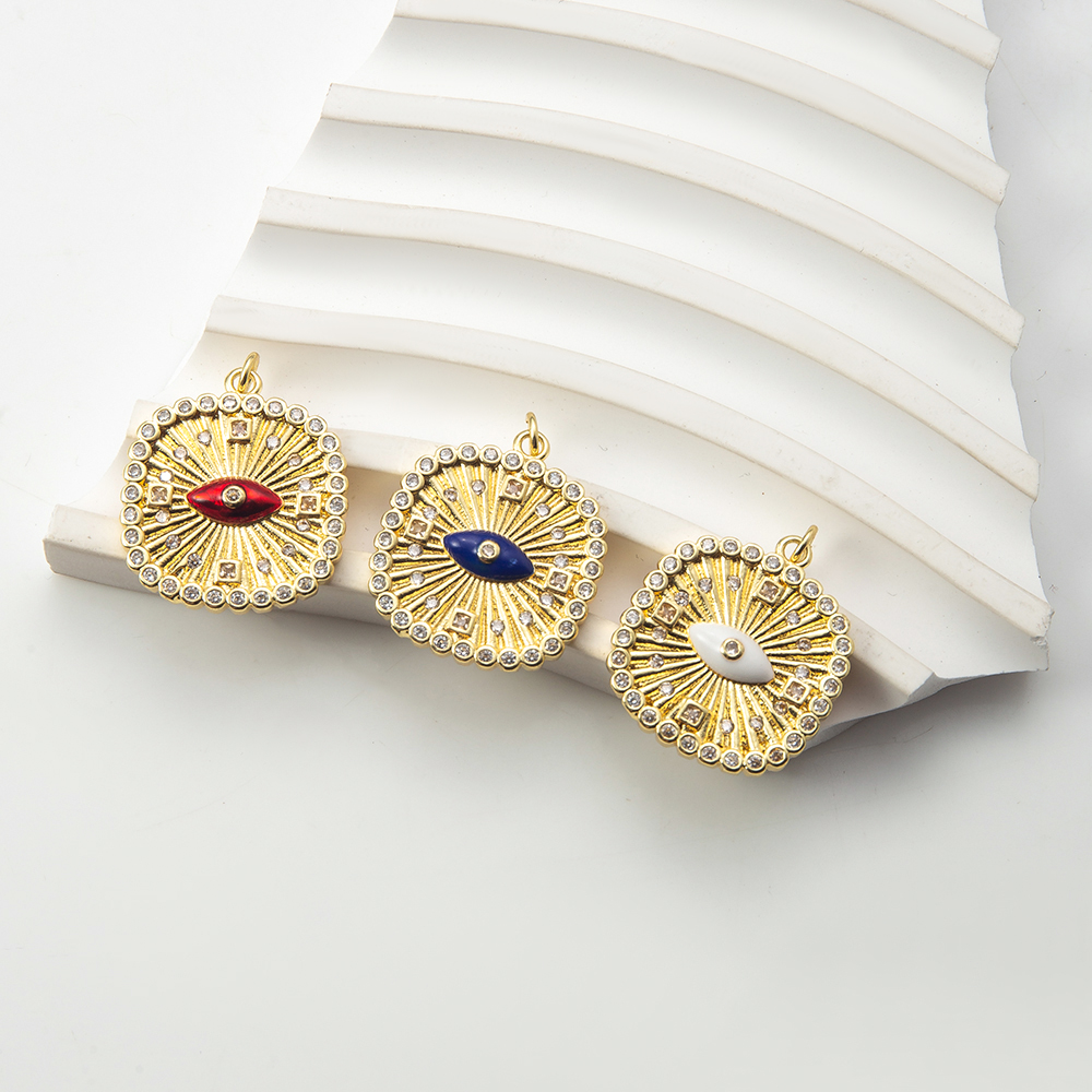 Pendentifs mauvais oeil, laiton, cadre, Placage, DIY & pavé de micro zircon, plus de couleurs à choisir, protéger l'environnement, sans nickel, plomb et cadmium, 21.76x3.60x27.75mm, Vendu par PC