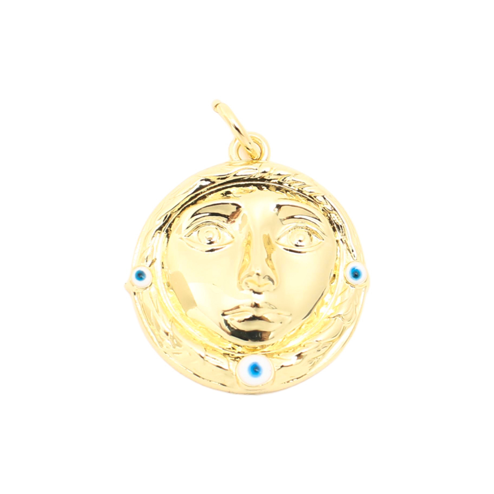 Pendentifs mauvais oeil, laiton, Rond, DIY & émail, doré, 18x6x4mm, Vendu par PC