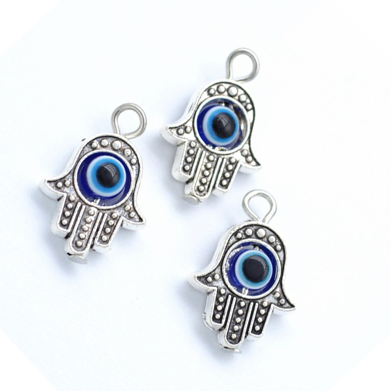 Pendentifs mauvais oeil, alliage de zinc, Main de Fatma, Plaqué de couleur d'argent, DIY & émail, 21x17mm, Trou:Environ 1mm, Vendu par PC