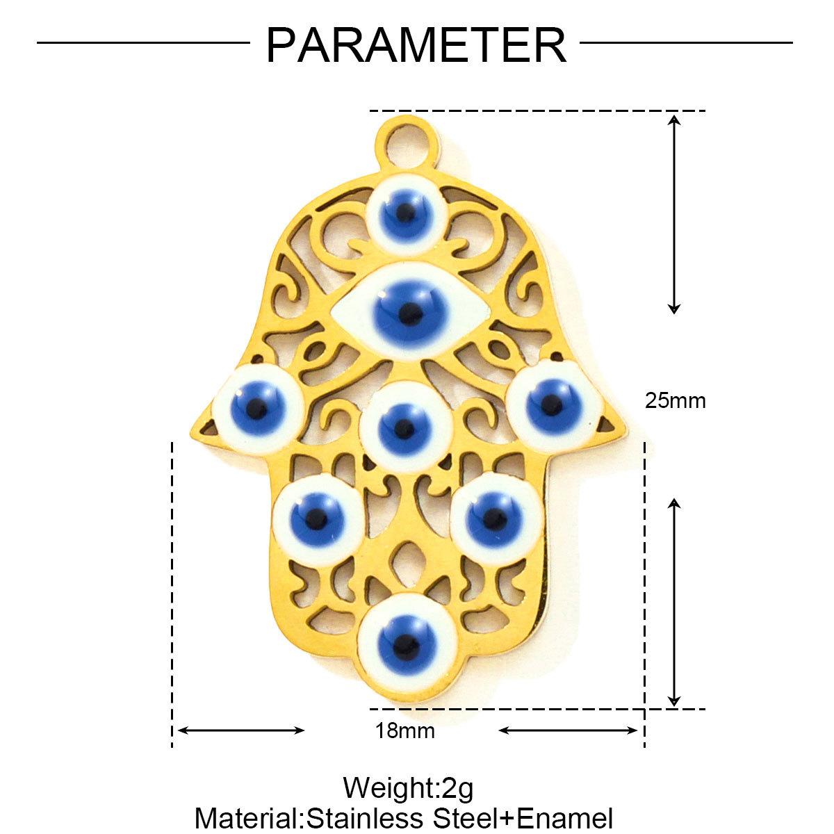 Pendentifs mauvais oeil, Acier inoxydable 304, Placage de couleur d'or, DIY & émail, plus de couleurs à choisir, 3PC/sac, Vendu par sac
