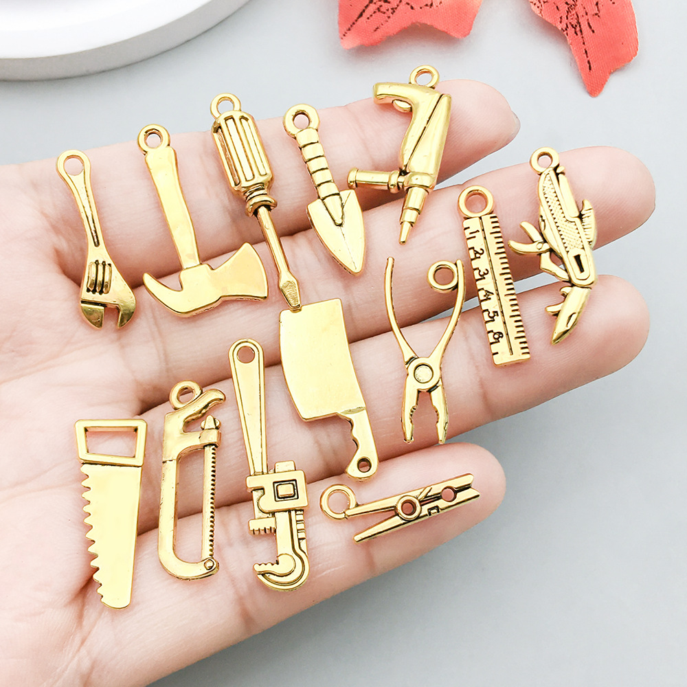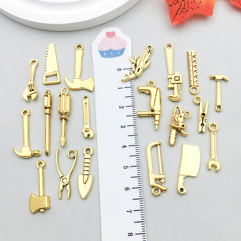 1:Mix 20pcs ancient gold tools series2:1 ancient gold ruler 5*24mm3:1 ancient gold clip 7*18mm4:1 ancient gold screwdriver 33*4mm5:1 ancient gold saw 23*9mm6:1 ancient gold ax 26*15mm7:1 ancient gold tweezers 23*10mm8:1 ancient gold ax 24*10mm9:1 ancient gold hammer 25*13mm10:1 ancient gold shovel 25*7mm11:1 ancient gold wrench 24*6mm12:1 ancient gold chainsaw 20*10mm13:1 ancient gold screwdriver 31*6mm14:1 ancient gold folding knife 25*11mm15:1 ancient gold wrench 24*7mm16:1 ancient gold saw 25*8mm17:1 ancient gold pliers 32*8mm18:1 ancient gold wrench 23*6mm19:1 ancient gold impact drill 12*26mm20:1 ancient gold knife 24*10mm21:1 ancient gold hammer 19*9mm