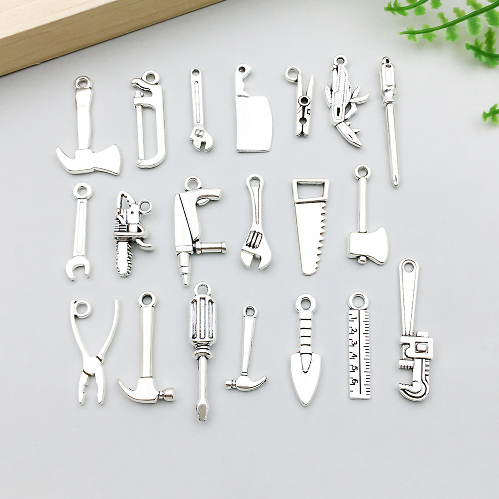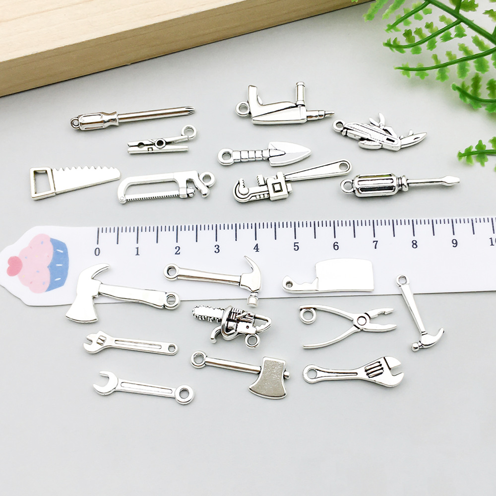 1:Mix 20pcs ancient silver tools series-23g-sn8992:1 ancient silver wrench 7*24mm3:1 ancient silver ax 16*26mm4:1 ancient silver hammer 13*25mm5:1 ancient silver screwdriver 6*31mm6:1 ancient silver wrench 6*24mm7:1 ancient silver saw 9*23mm8:1 ancient silver saw 7*26mm-9:1 ancient silver impact drill 7*27mm10:1 ancient silver pliers 11*23mm11:1 ancient silver shovel 6*25mm12:1 ancient silver ax 10*25mm13:silver wrench 6*24mm14:1 ancient silver kitchen knife 10*24mm15:1 ancient silver hammer 19*9mm16:1 ancient silver clip 5*15mm-17:1 ancient silver ruler 5*24mm-0.8g18:1 ancient silver chainsaw 20*9mm-19:1 ancient silver multifunctional knife 11*24mm20:1 ancient silver wrench 8*32mm21:1 ancient silver screwdriver 4*33mm