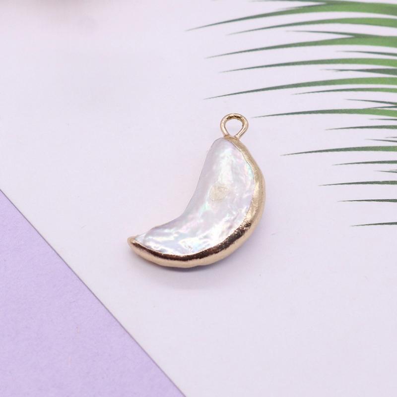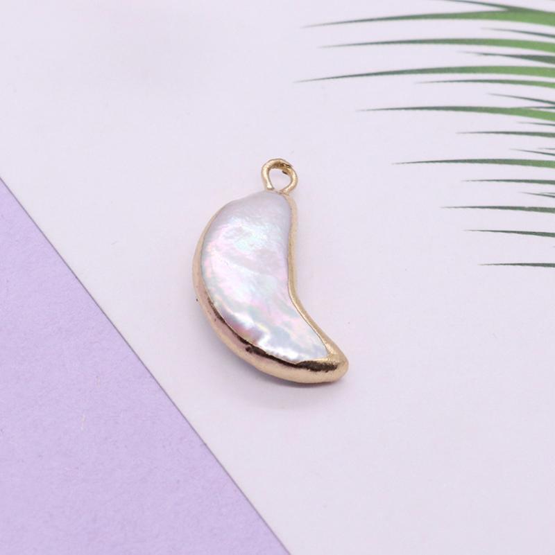 Pendentifs perles d'eau douce, perle d'eau douce cultivée, avec laiton, lune, Placage de couleur d'or, DIY, couleurs mélangées, Vendu par PC