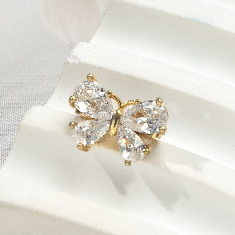 Pendentifs strass en laiton, Noeud papillon, Placage, DIY & avec strass & double trou, doré, protéger l'environnement, sans nickel, plomb et cadmium, 15.56x5.75x9.20mm, Vendu par PC