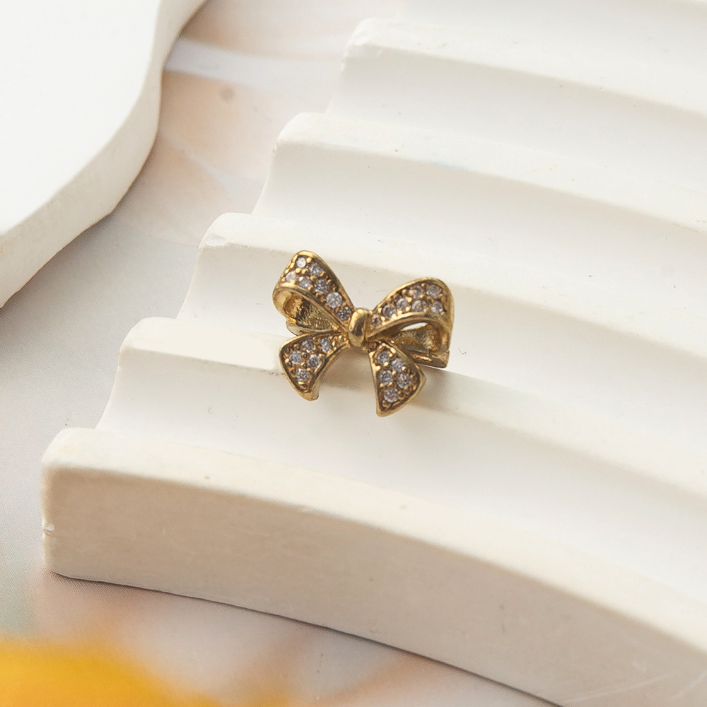 Pendentifs strass en laiton, Noeud papillon, Placage, DIY & avec strass & double trou, doré, protéger l'environnement, sans nickel, plomb et cadmium, 12.36x6.70x9.80mm, Diamètre intérieur:Environ 1.2mm, Vendu par PC
