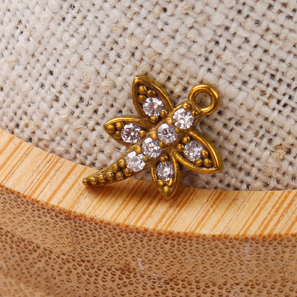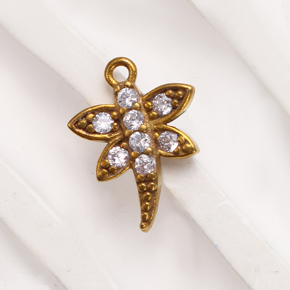 Pendentifs strass en laiton, libellule, Placage, DIY & avec strass, doré, protéger l'environnement, sans nickel, plomb et cadmium, 10.48x2.27x14.63mm, Diamètre intérieur:Environ 5.09mm, Vendu par PC