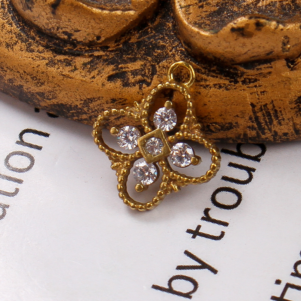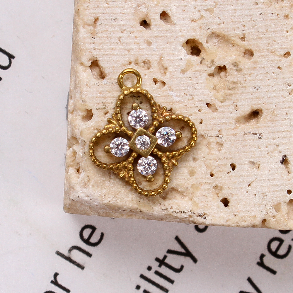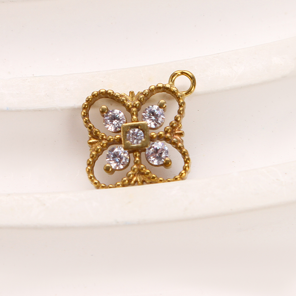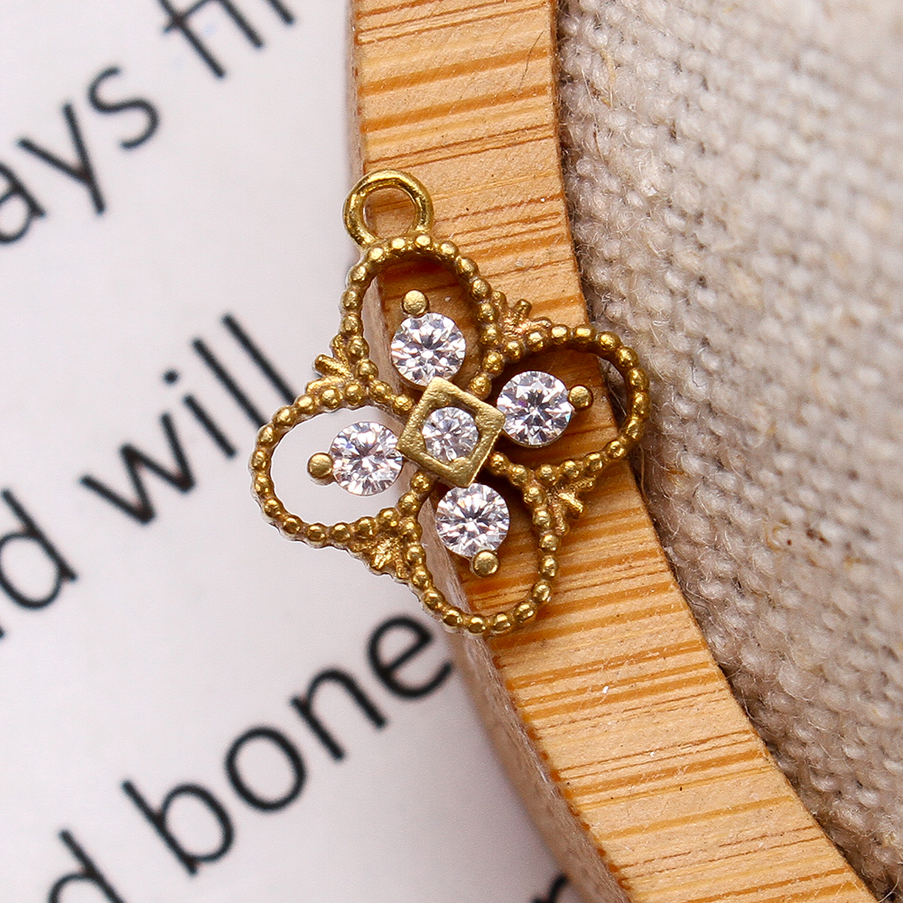 Pendentifs strass en laiton, Trèfle à quatre feuilles, Placage, DIY & avec strass & creux, doré, protéger l'environnement, sans nickel, plomb et cadmium, 11.23x2.03x13.35mm, Diamètre intérieur:Environ 5.09mm, Vendu par PC