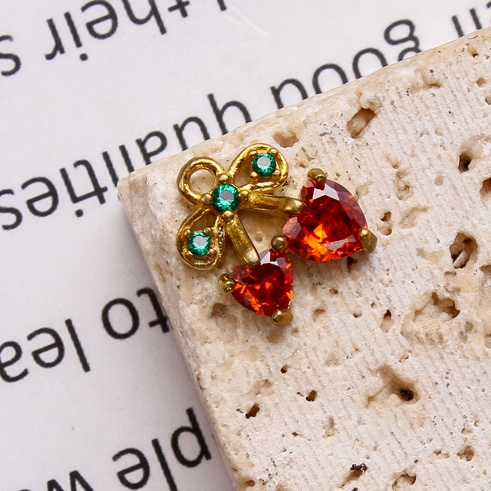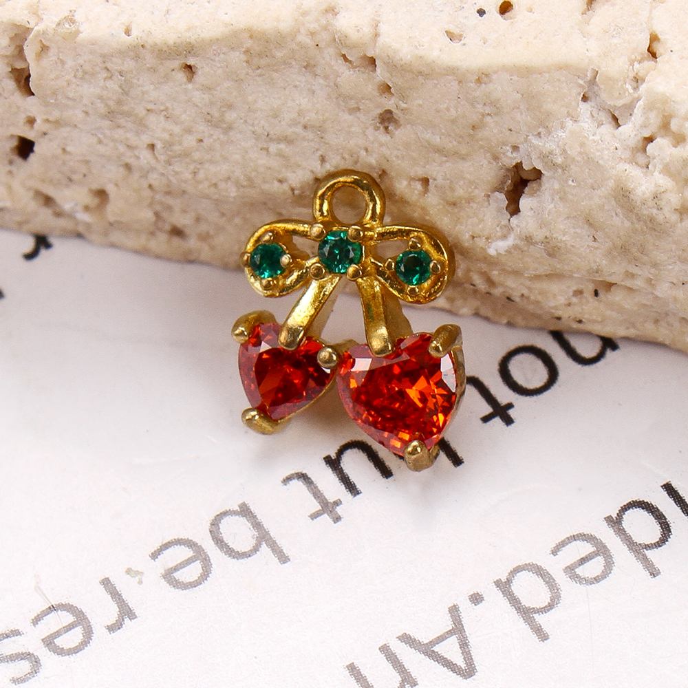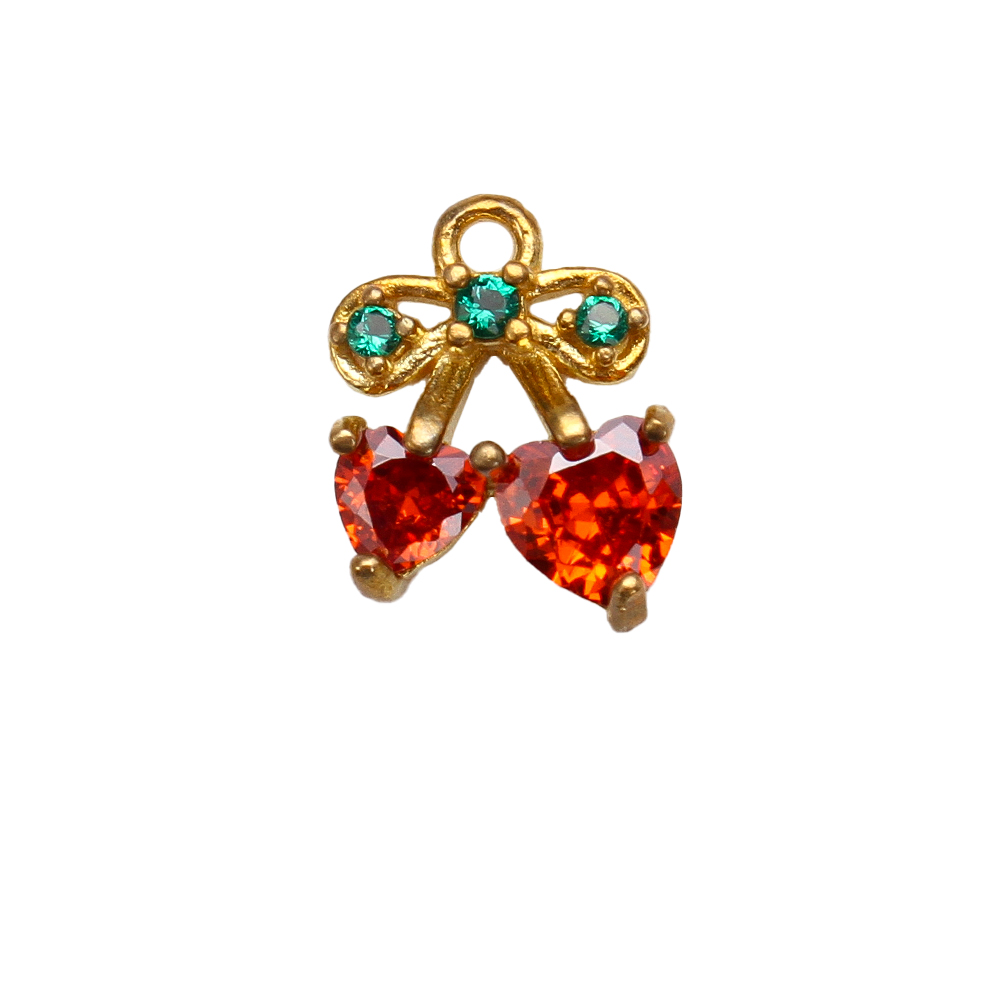 Pendentifs strass en laiton, cerise, Placage, DIY & avec strass, doré, protéger l'environnement, sans nickel, plomb et cadmium, 9.45x3.58x11.68mm, Diamètre intérieur:Environ 5.09mm, Vendu par PC