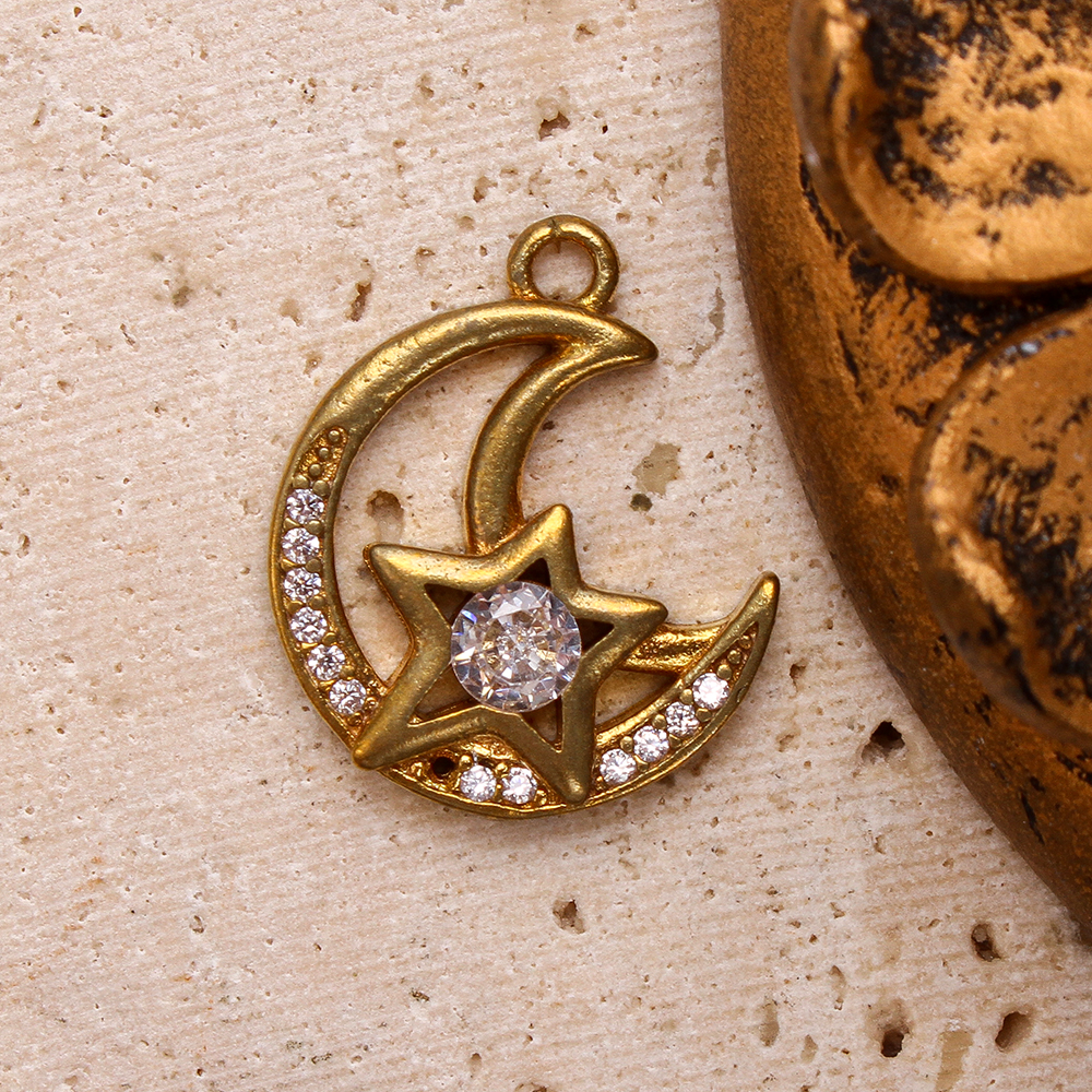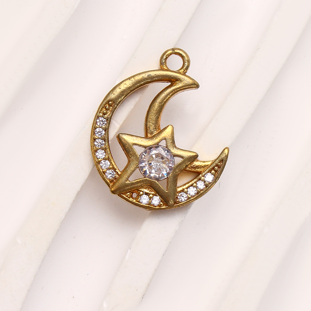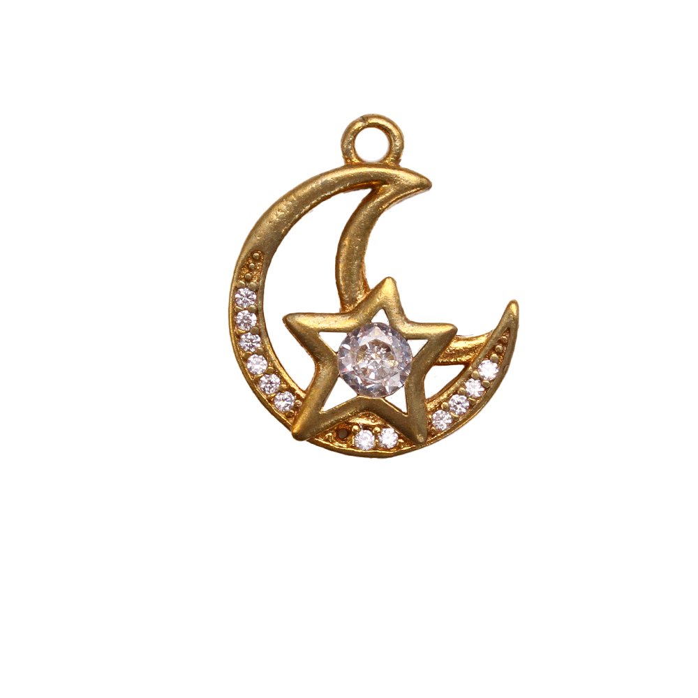 Pendentifs strass en laiton, Lune et Etoile, Placage, DIY & avec strass, doré, protéger l'environnement, sans nickel, plomb et cadmium, 14.61x2.52x18.54mm, Diamètre intérieur:Environ 5.09mm, Vendu par PC