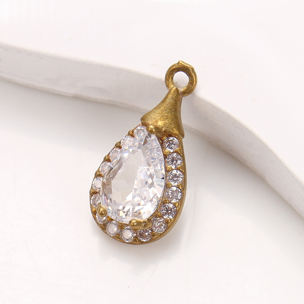 Pendentifs strass en laiton, larme, Placage, DIY & avec strass, doré, protéger l'environnement, sans nickel, plomb et cadmium, 9.23x3.81x18.23mm, Diamètre intérieur:Environ 5.09mm, Vendu par PC