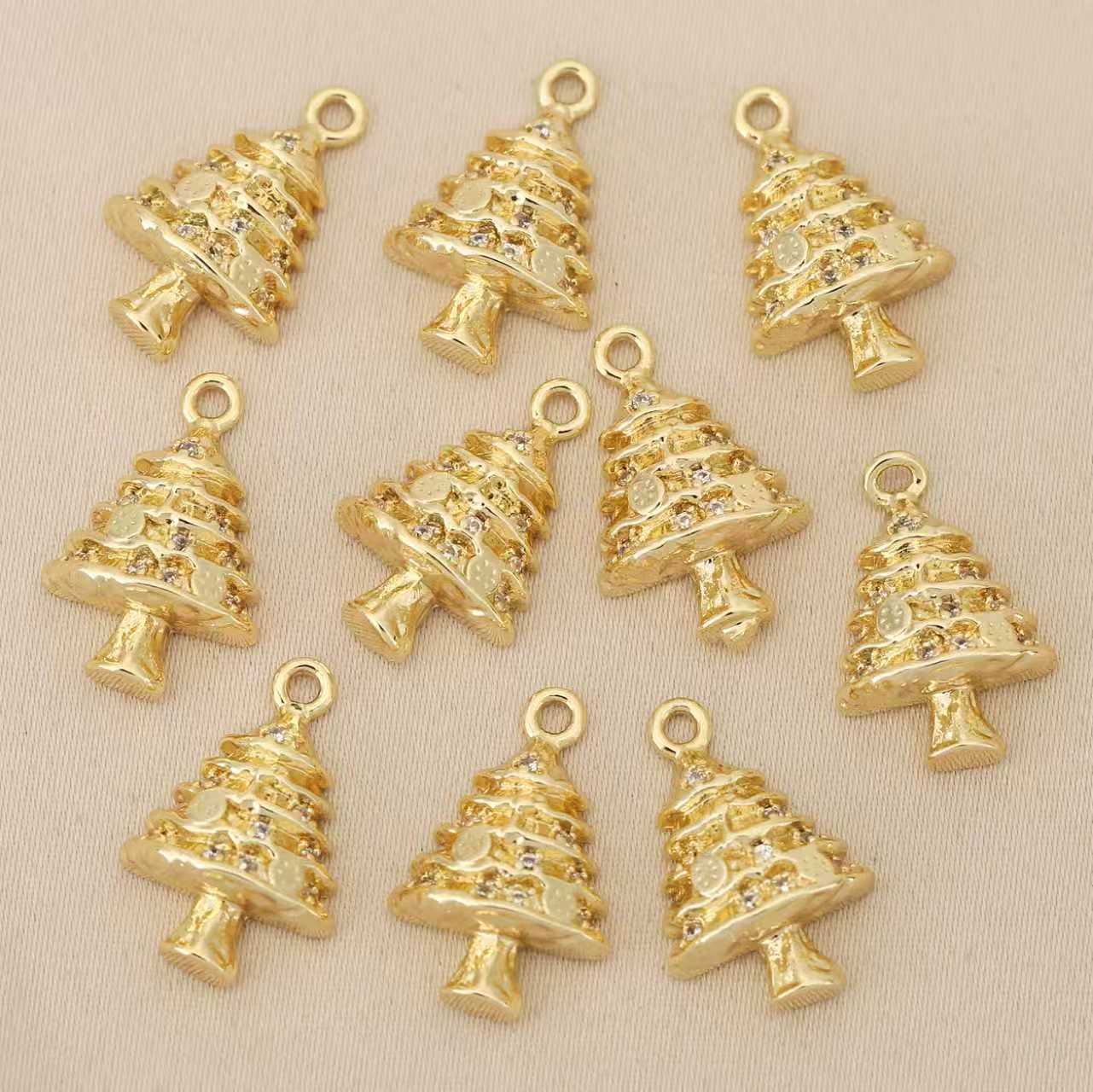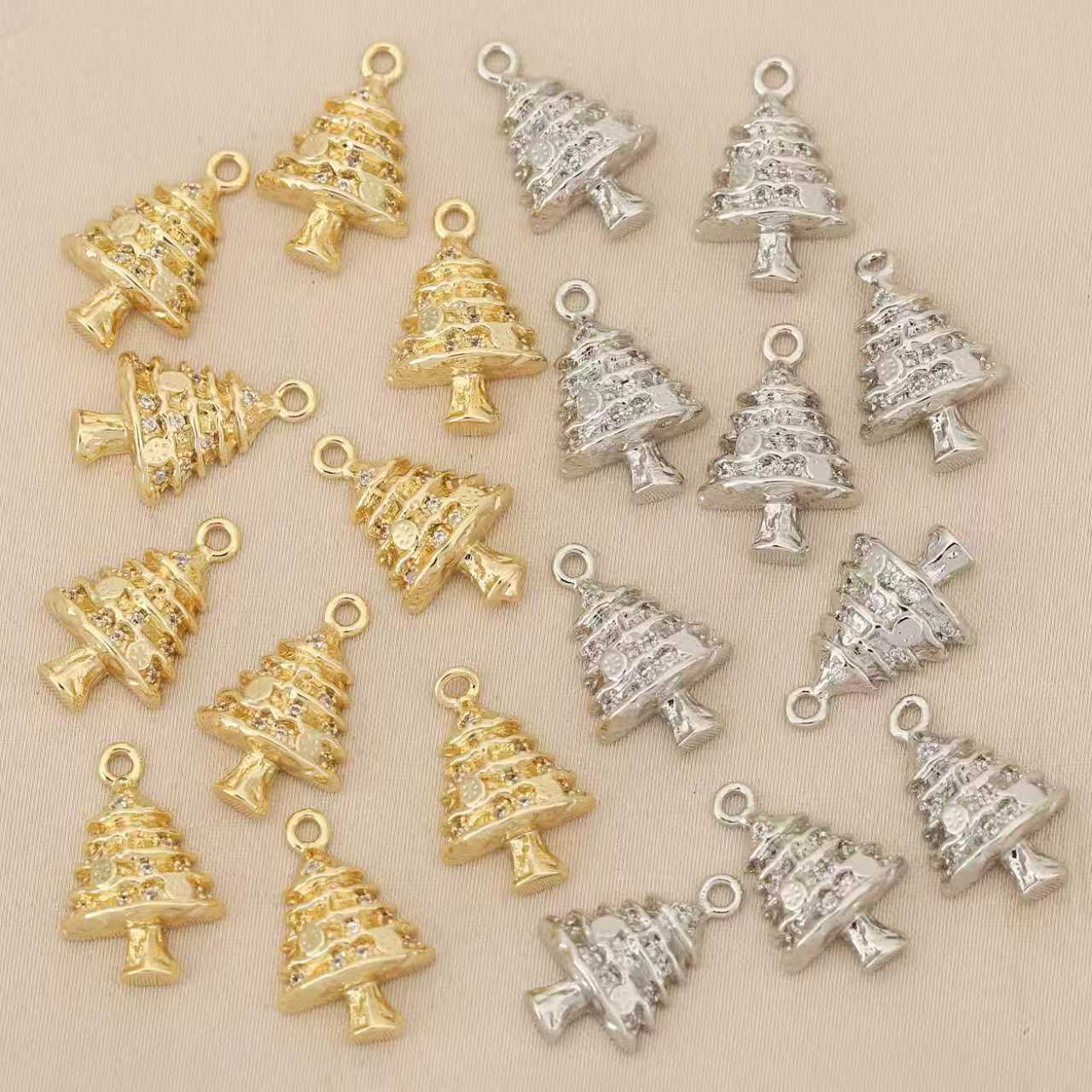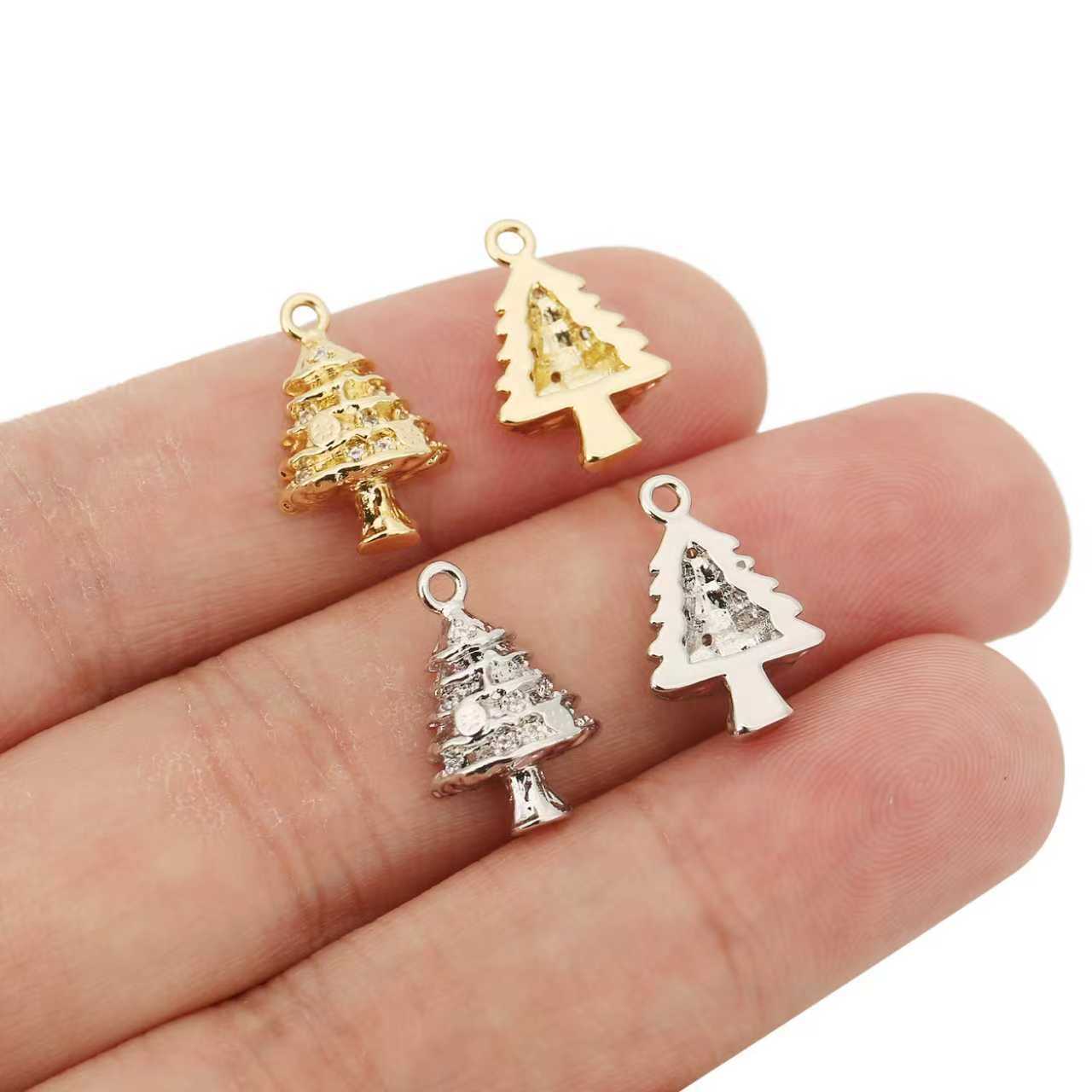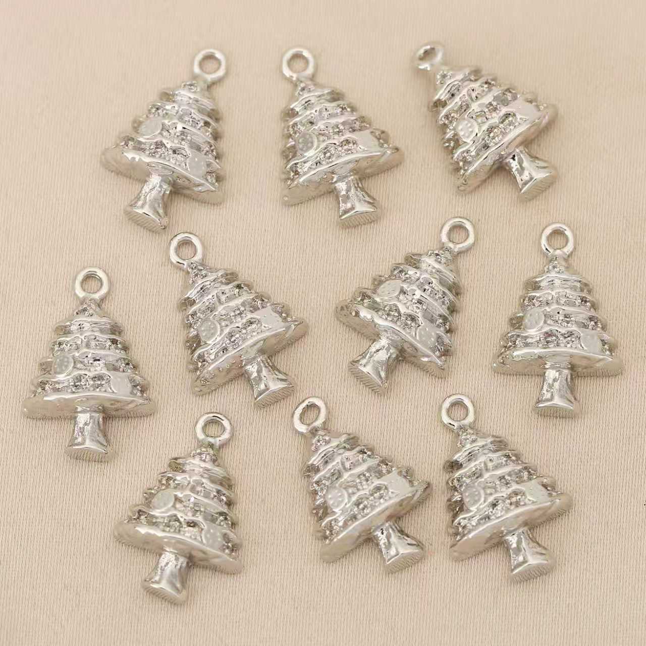 Pendentifs strass en laiton, arbre de noël, Placage, DIY & avec strass, plus de couleurs à choisir, protéger l'environnement, sans nickel, plomb et cadmium, 10PC/sac, Vendu par sac