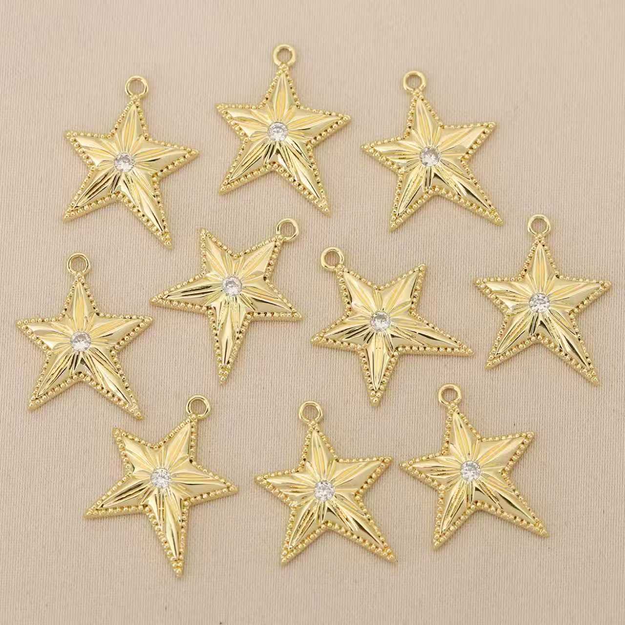 Pendentifs strass en laiton, étoile, Placage, DIY & avec strass, plus de couleurs à choisir, protéger l'environnement, sans nickel, plomb et cadmium, 10PC/sac, Vendu par sac