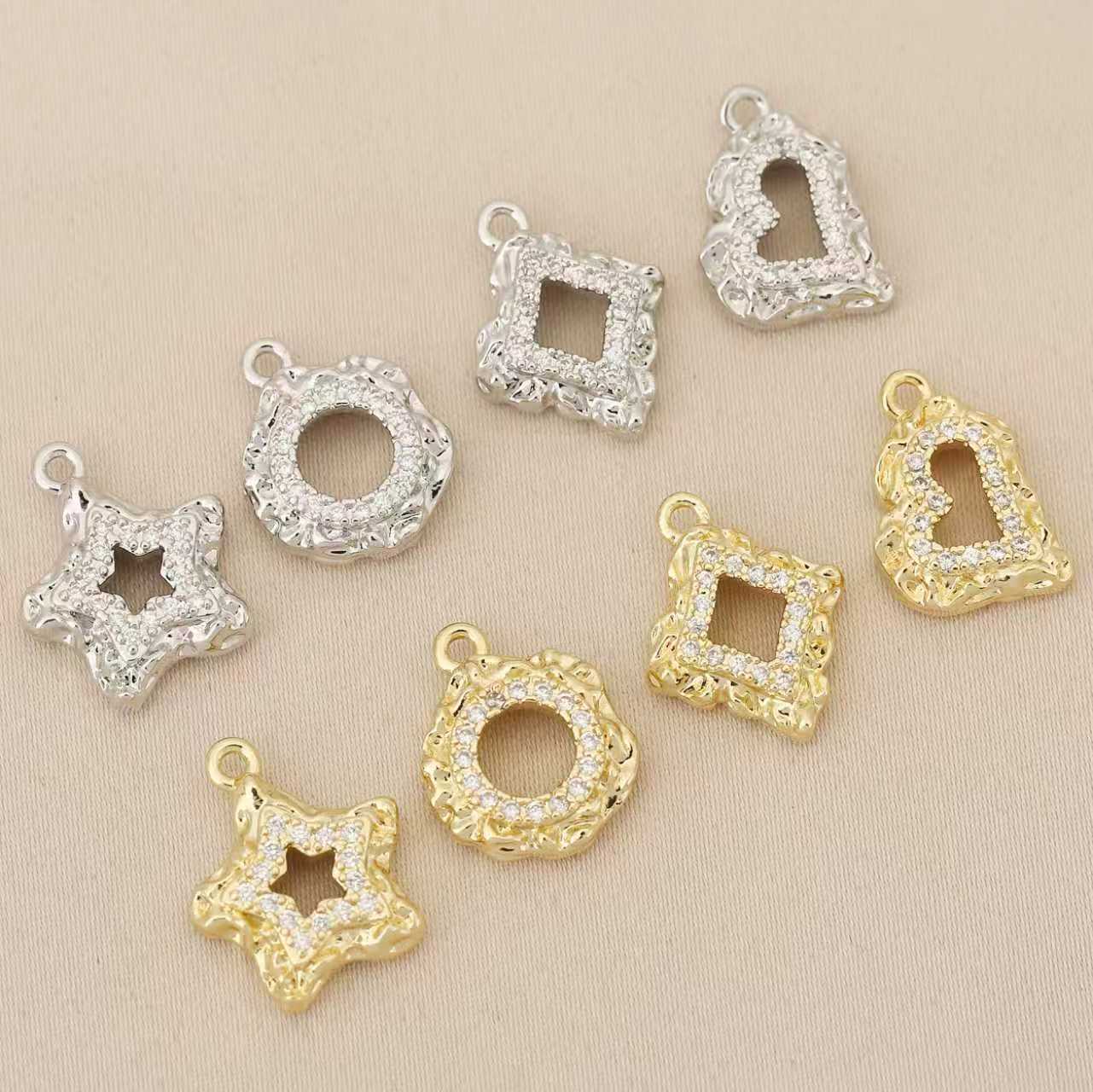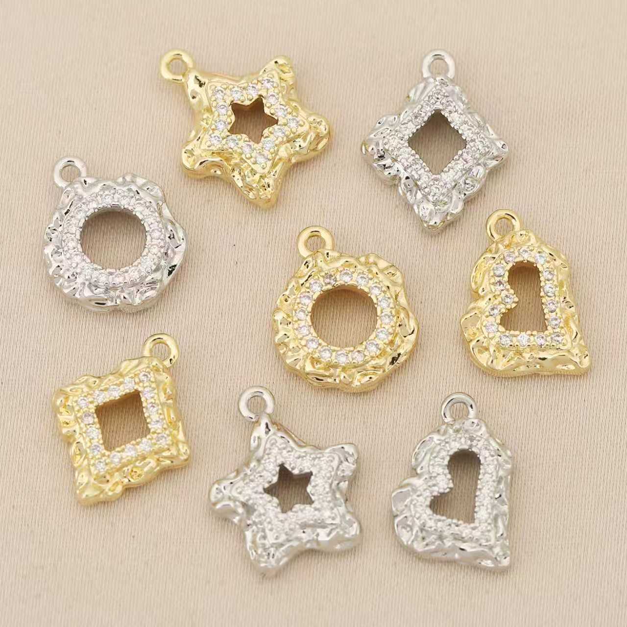Pendentifs strass en laiton, Placage, DIY & avec strass & creux, plus de couleurs à choisir, protéger l'environnement, sans nickel, plomb et cadmium, 10PC/sac, Vendu par sac