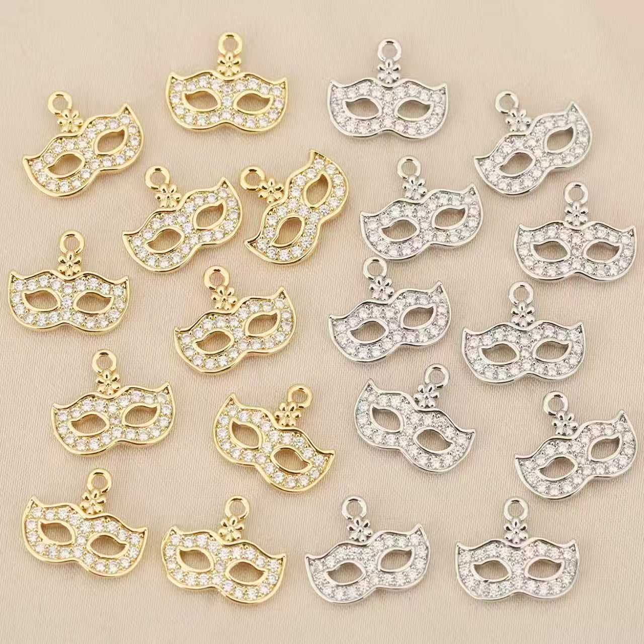 Pendentifs strass en laiton, Masque, Placage, DIY & avec strass, plus de couleurs à choisir, protéger l'environnement, sans nickel, plomb et cadmium, 10PC/sac, Vendu par sac