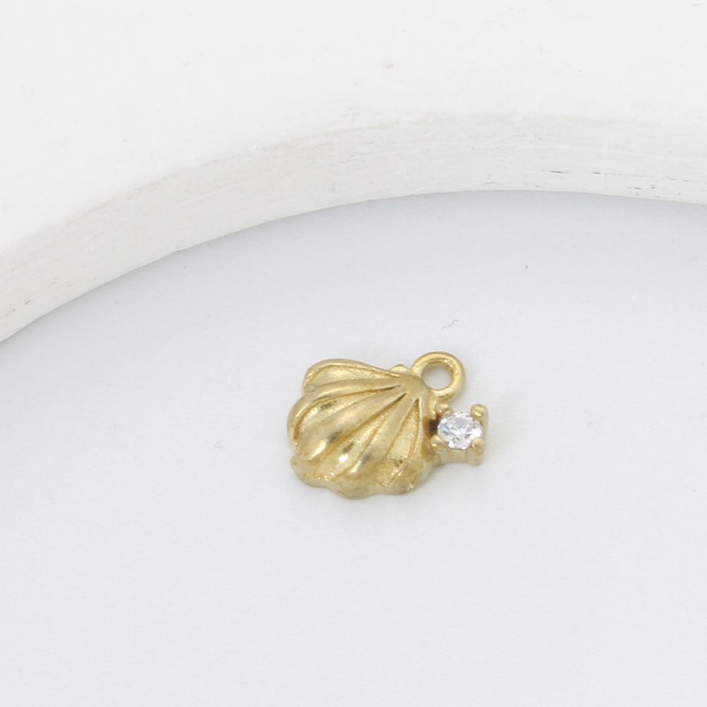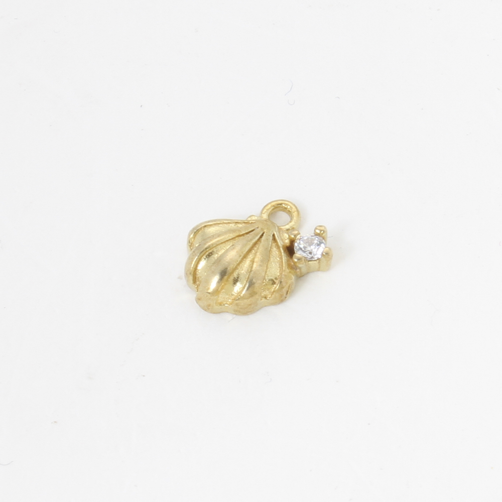 Pendentifs strass en laiton, coquille, Placage de couleur d'or, DIY & avec strass, doré, protéger l'environnement, sans nickel, plomb et cadmium, 7.90x7.90x3.40mm, Vendu par PC