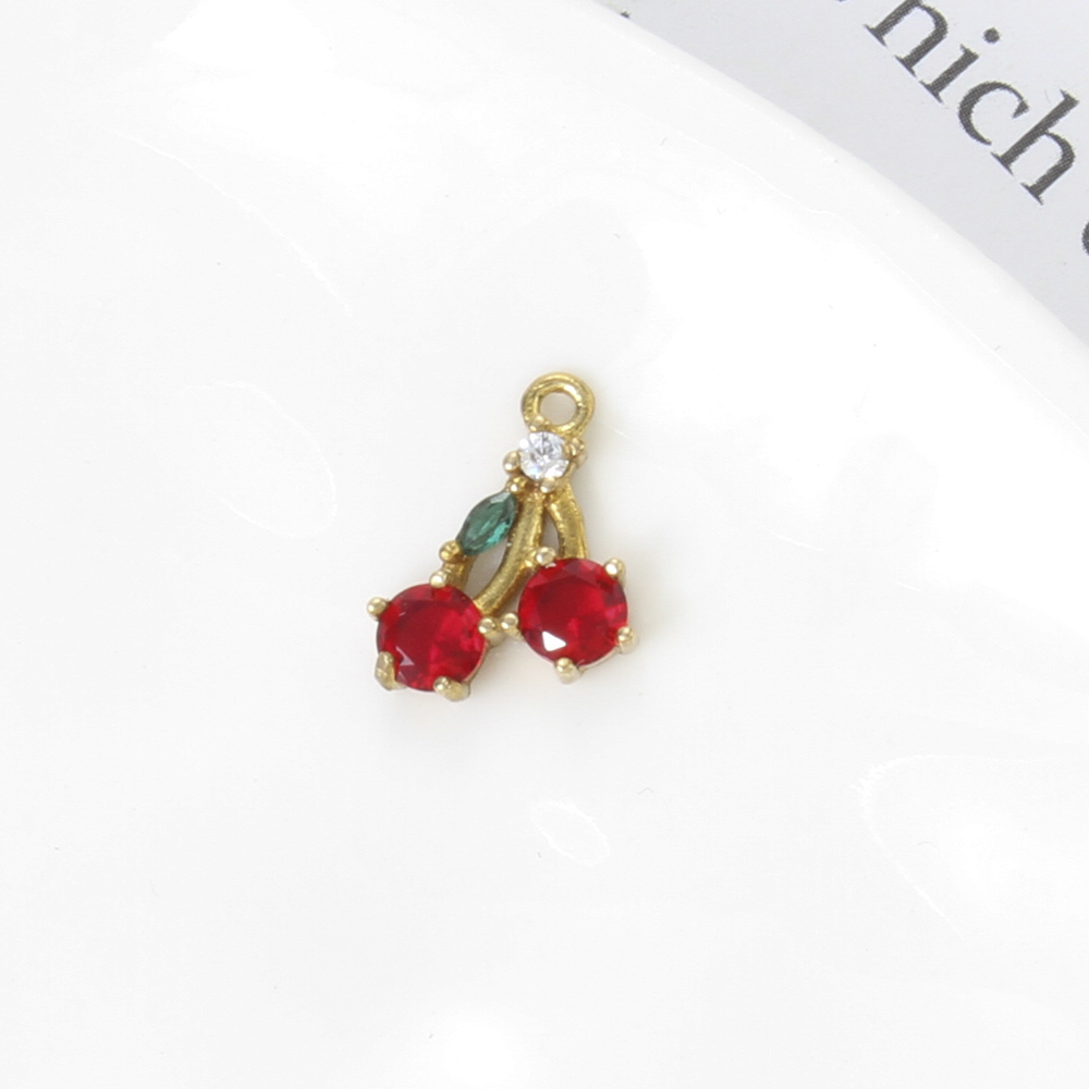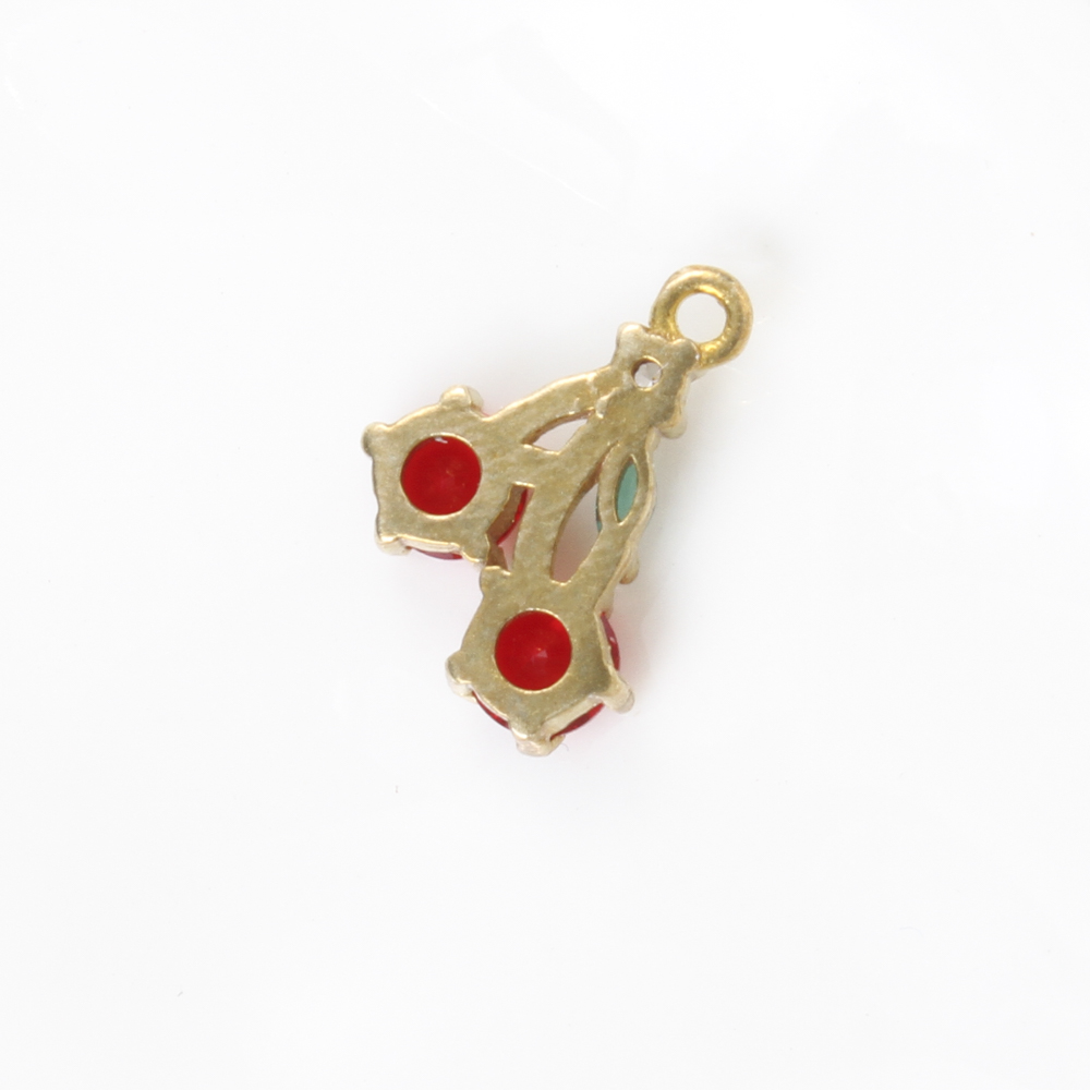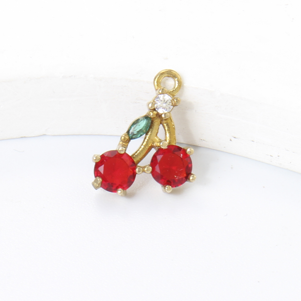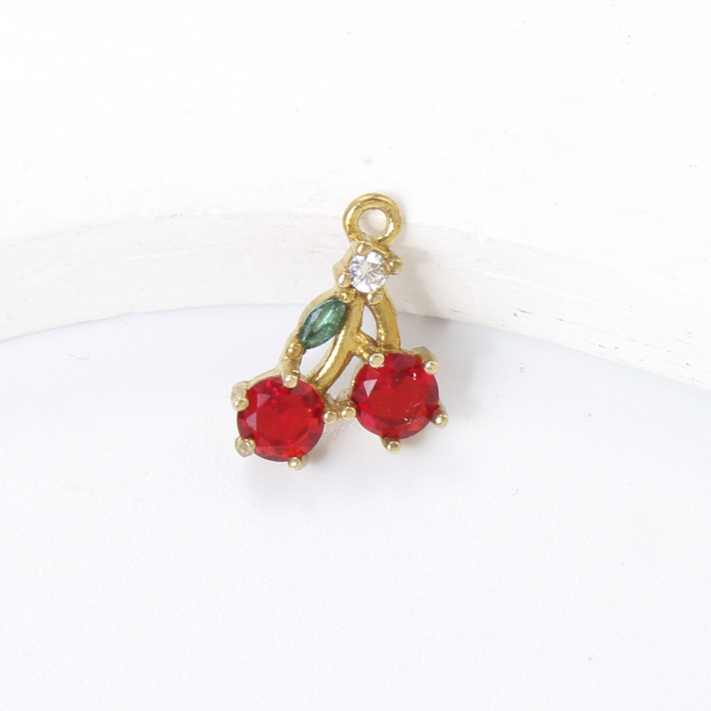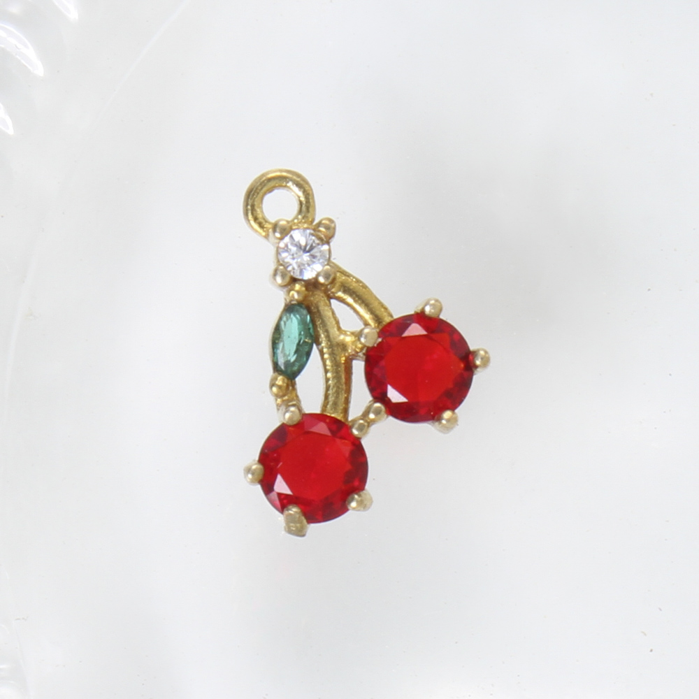 Pendentifs strass en laiton, cerise, Placage de couleur d'or, DIY & avec strass, doré, protéger l'environnement, sans nickel, plomb et cadmium, 12.80x9.70x0.50mm, Vendu par PC