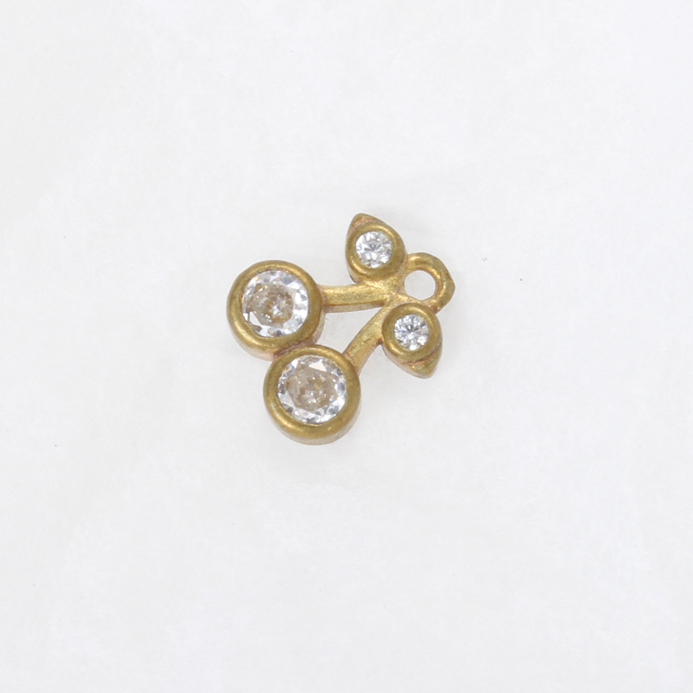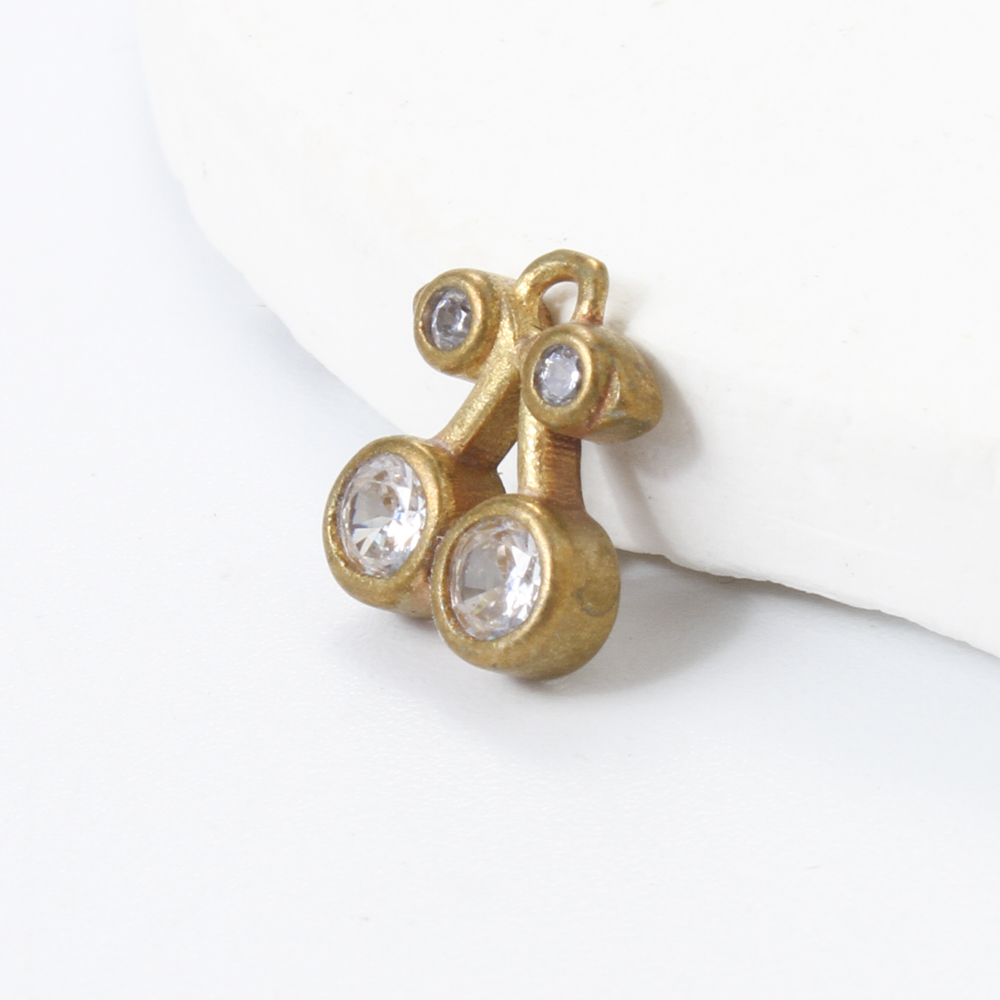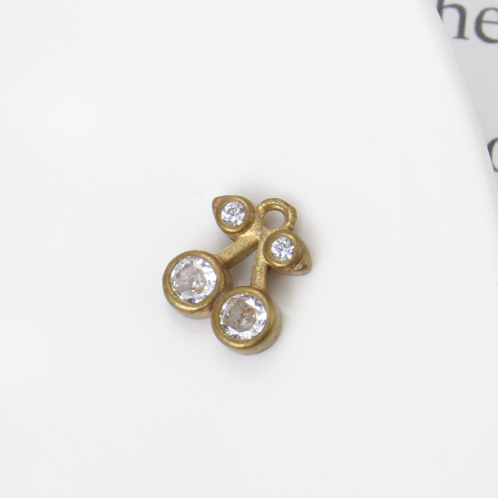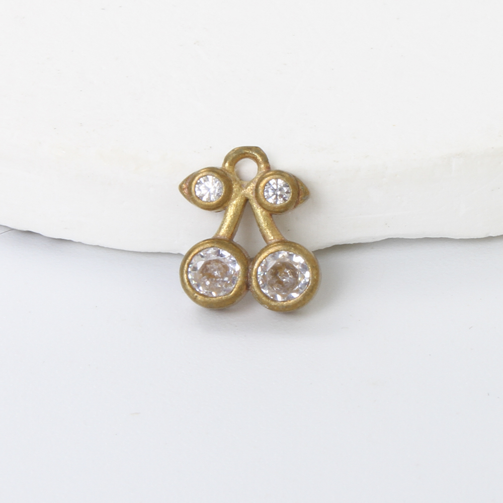 Pendentifs strass en laiton, cerise, Placage, DIY & avec strass, doré, protéger l'environnement, sans nickel, plomb et cadmium, 9.40x8x2.50mm, Vendu par PC