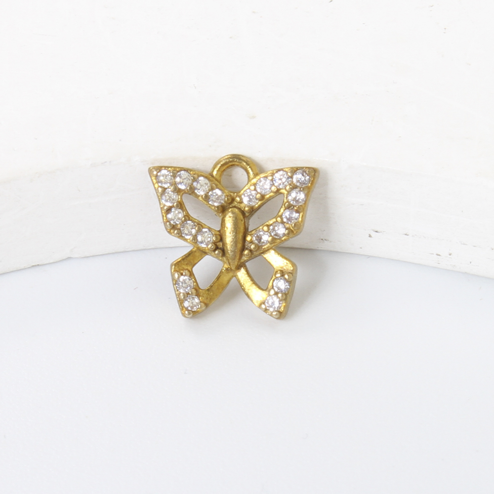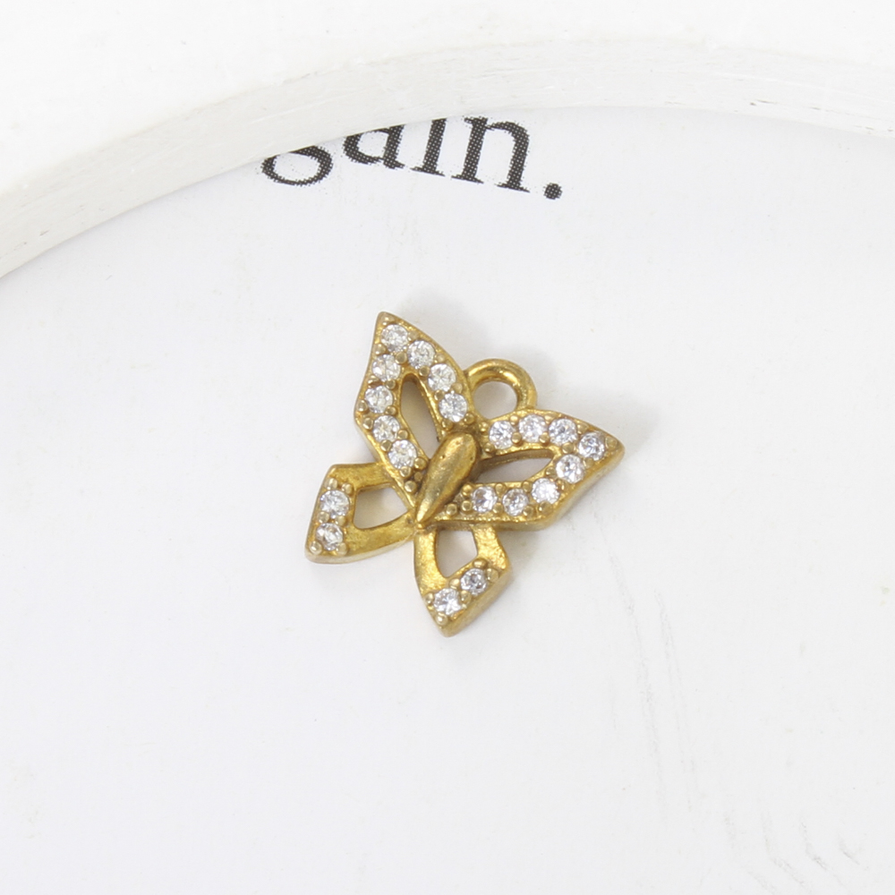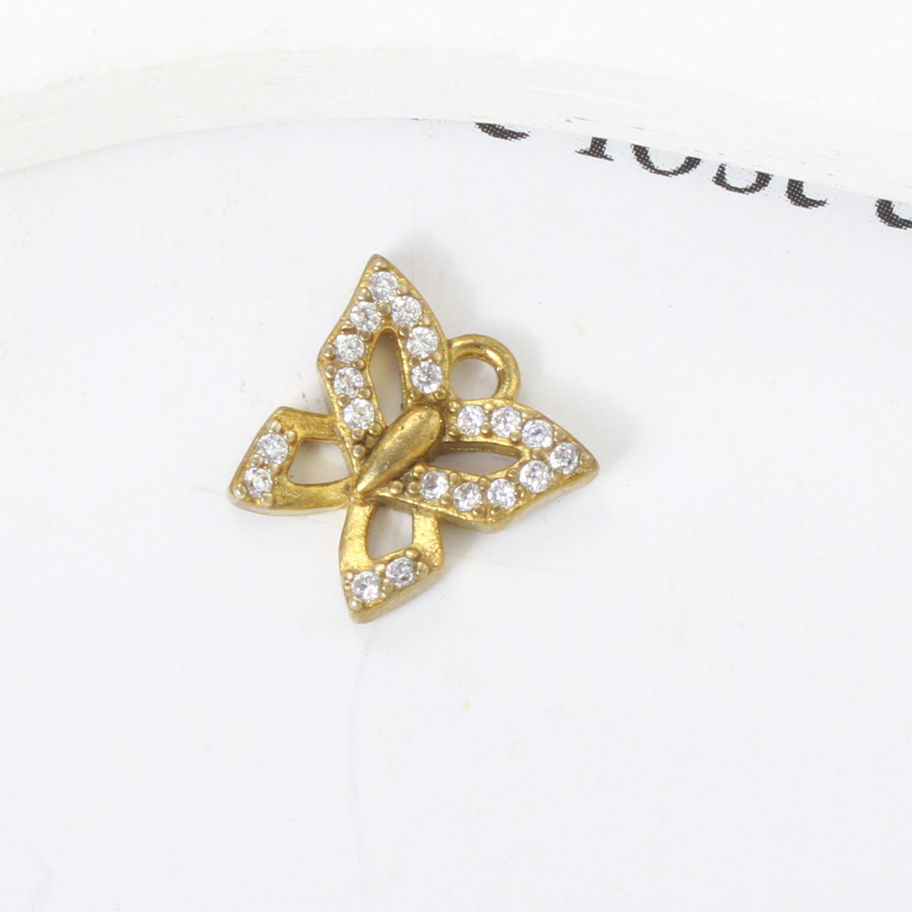 Pendentifs strass en laiton, papillon, Placage, DIY & avec strass, doré, protéger l'environnement, sans nickel, plomb et cadmium, 9.60x10x1.90mm, Vendu par PC
