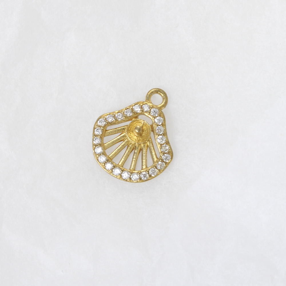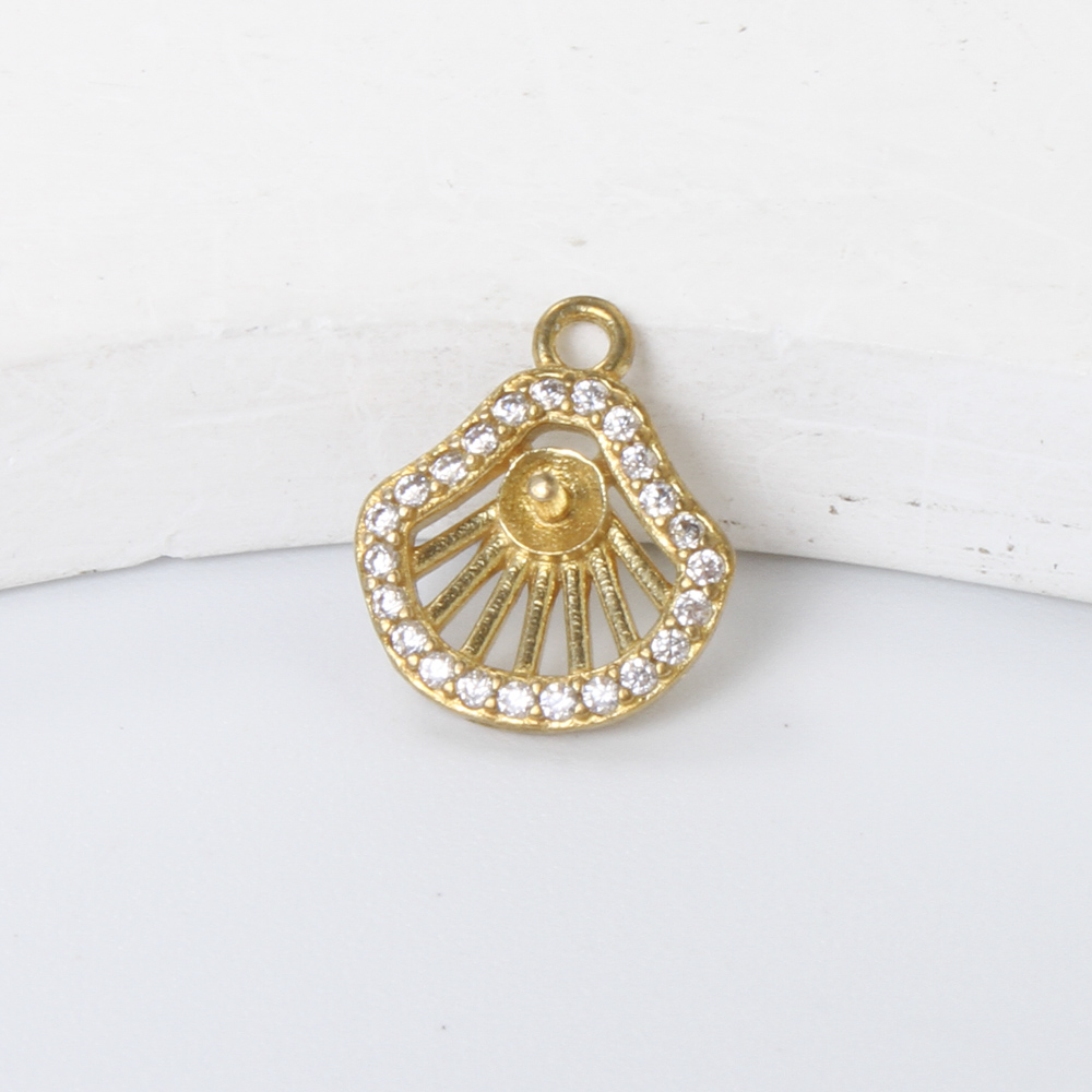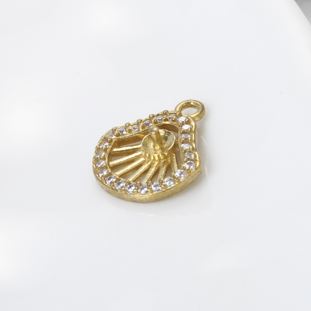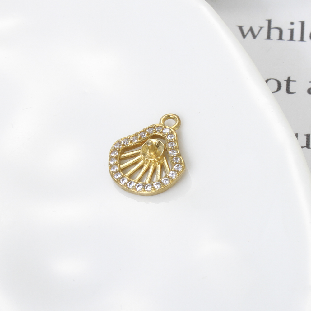 Pendentifs strass en laiton, coquille, Placage, DIY & avec strass, doré, protéger l'environnement, sans nickel, plomb et cadmium, 12x10x3mm, Vendu par PC